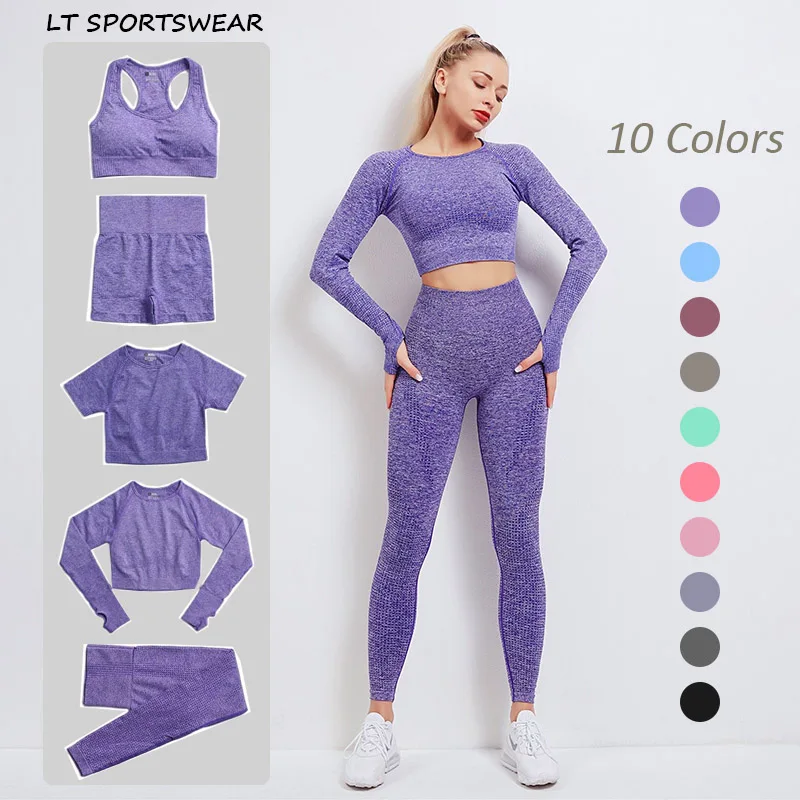 Женский спортивный костюм, обтягивающий Топ с длинным рукавом, бесшовный спортивный костюм для фитнеса