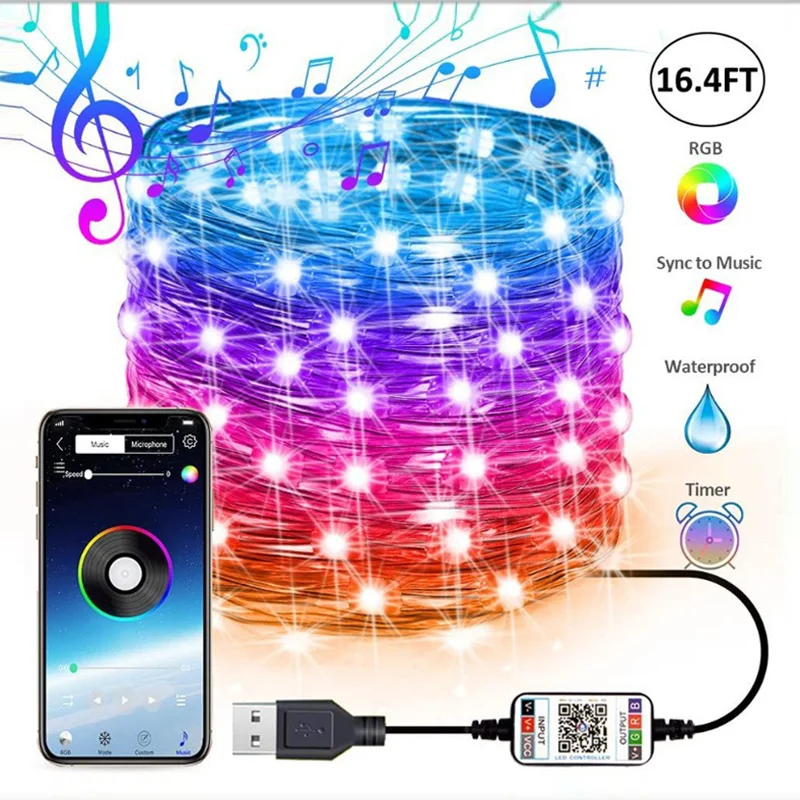 USB светодиодный светильник Bluetooth App Управление, медный провод...