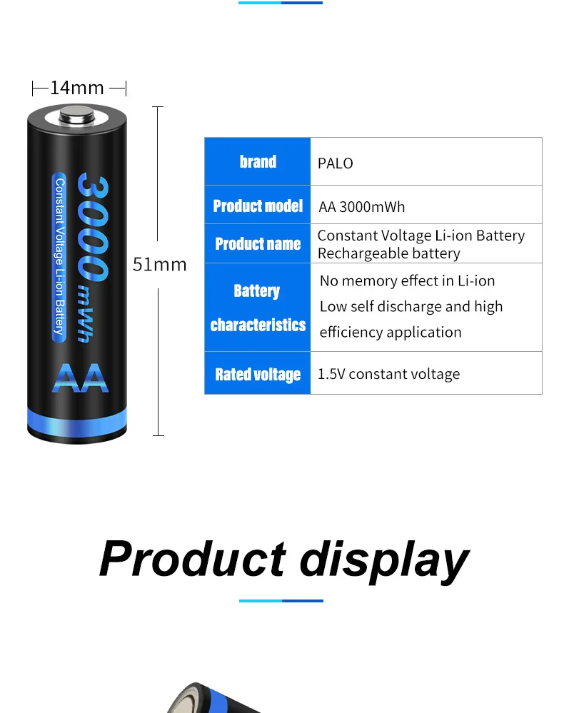 Умное зарядное устройство PALO, 1,5 в, AA, 1,5 МВтч, для литий-ионн...
