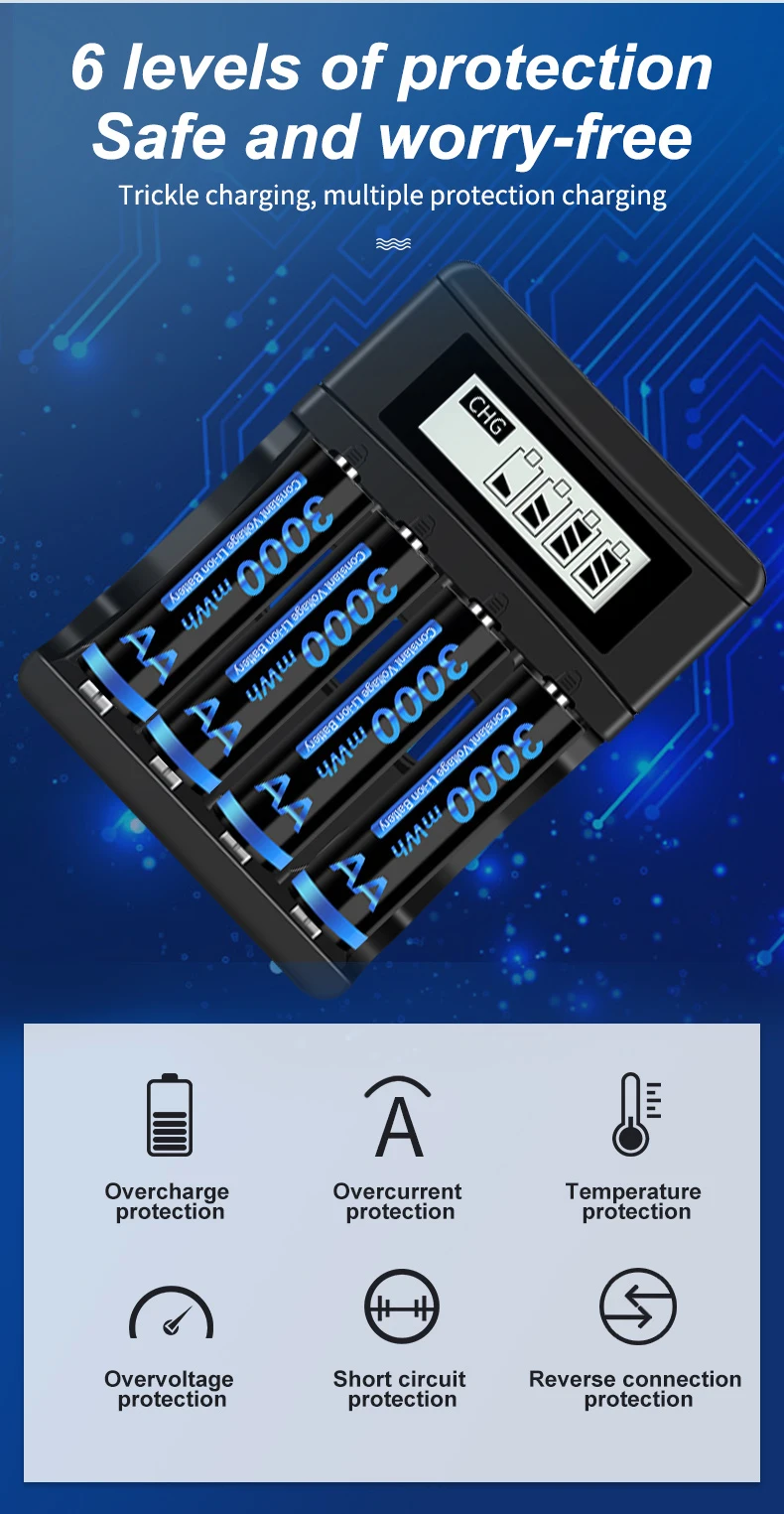1,5 в AAA литиевые перезаряжаемые батареи 1,5 МВтч + 1,5 в AA литий...