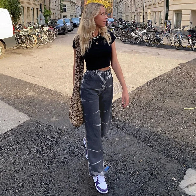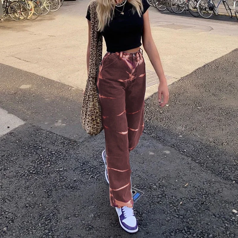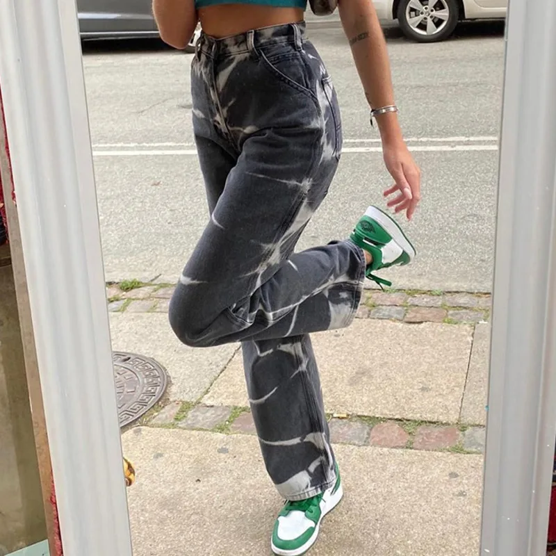 Джинсы Y2k женские с завышенной талией, хлопковые джоггеры из денима, вертикальные прямые штаны в стиле Харадзюку, ретро, 2021