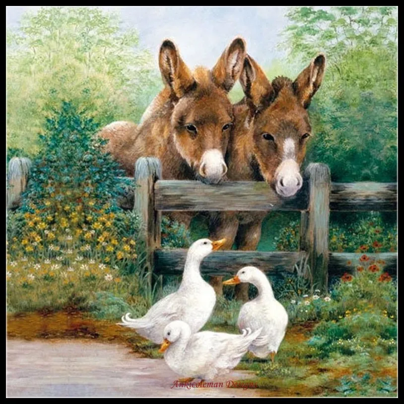 Счетная вышивка крестиком -14 ct Aida DMC цвет сделай сам искусство ручной работы Домашний Декор-три утки и два Дона