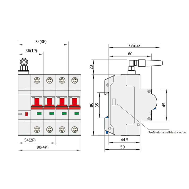 Номинальное напряжение: 230 В переменного тока (1P, 2P) /400 В переменного тока (3P, 4P)