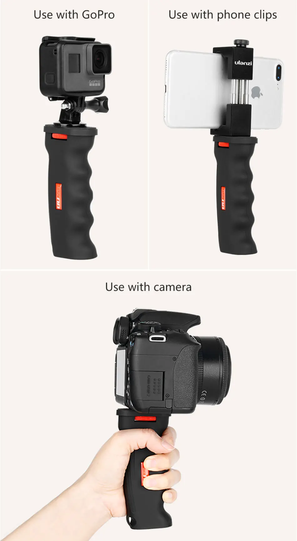 Удобная ручка, подходит для вашей руки 1/4 винт, Поддержка DSLR, SLR камера, смартфон с зажимом для телефона, экшн-камеры с креплением камеры 1/4 резьба на нижней части, может быть установлен на штатив, посылка для монопода или другого стабилизатора включает в себя: рукоятку UURIG R003-1 шт.