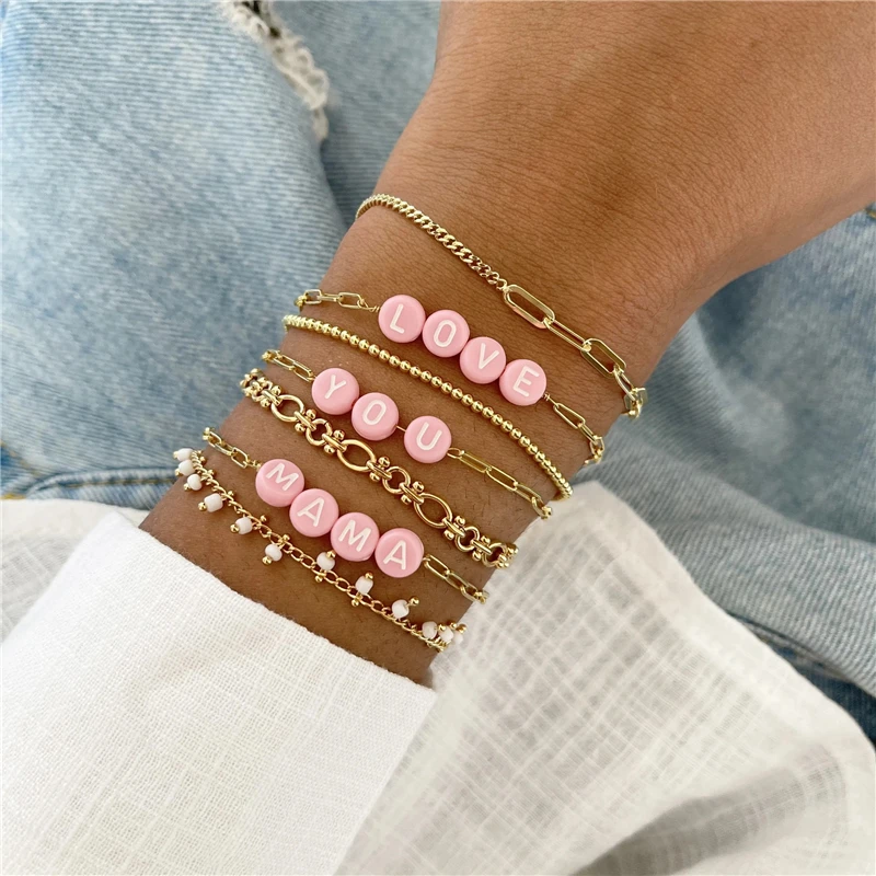 Летние регулируемые браслеты и браслет-цепочка с медной скрепкой и надписью на день матери, 2021