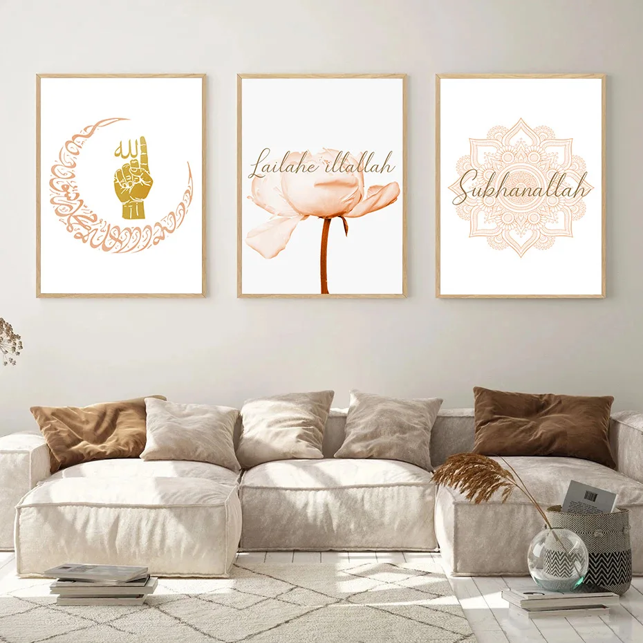 Мусульманский плакат с зелеными золотыми звездами, настенный плакат...