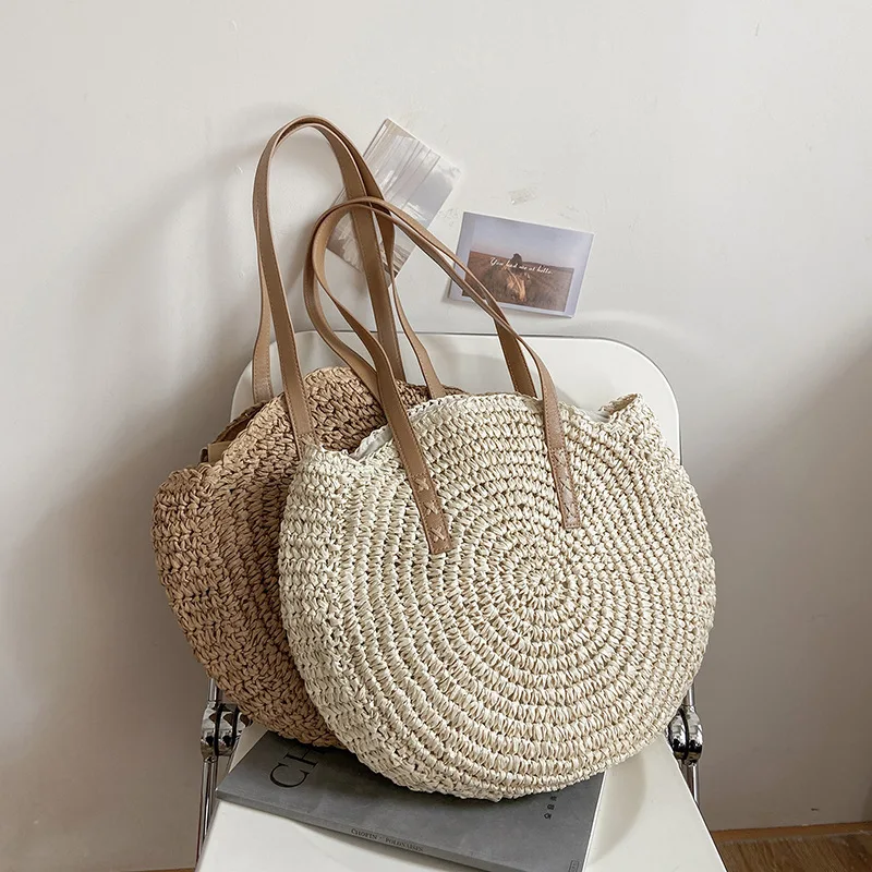 Круглая пляжная сумка из рафии, винтажная плетеная сумочка ручной работы на ремне, круглые плетеные богемные Летние повседневные мешки для отпуска