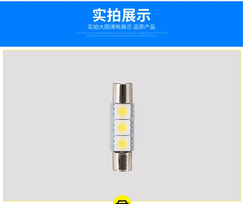 Характеристика:Автомобильные бренды/Модель: УниверсальнаяТип изделия: светодиодный светильник для автомобиляНапряжение: 12 В постоянного токаТип интерфейса:Гирлянда(C5W)Приспособление:29 ммТип SMD: 5050 SMD
