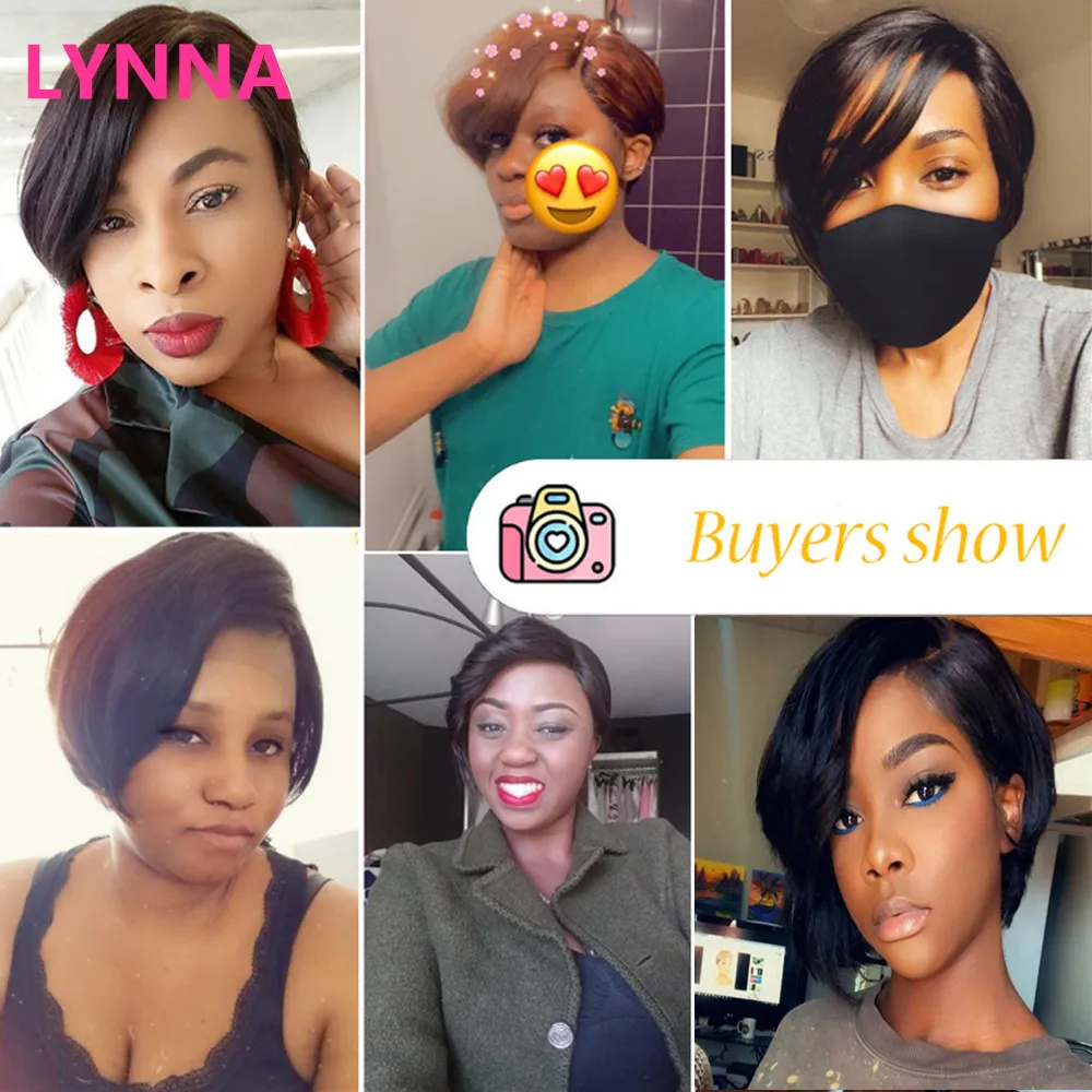 LYNNA короткие волосы, парики машинной работы, дешевые прямые челов...