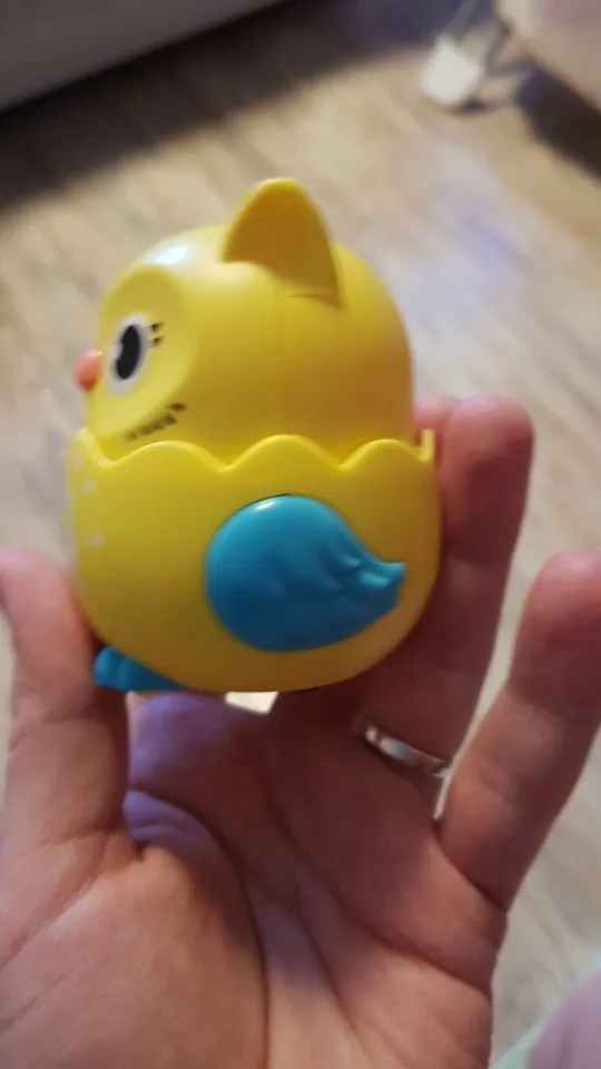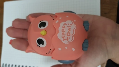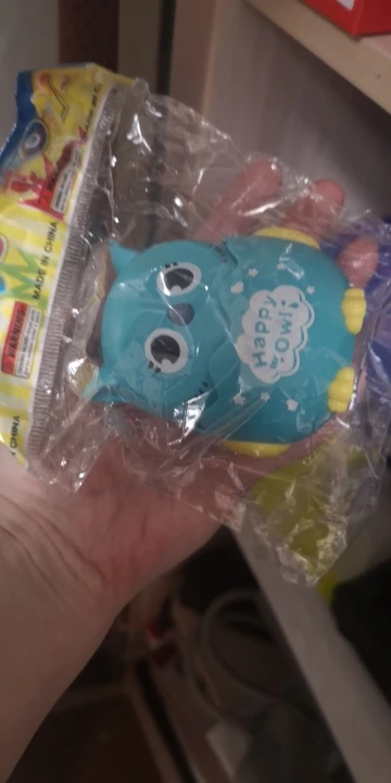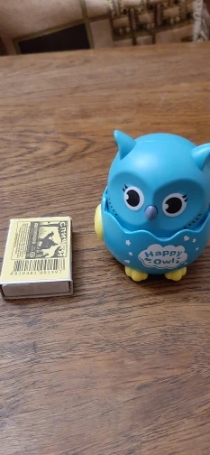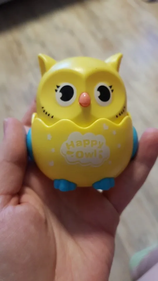 Яркая, симпотичная игрушка. Не тяжёлая. Работает при нажатии на голову совы. Ребёнок даволен
