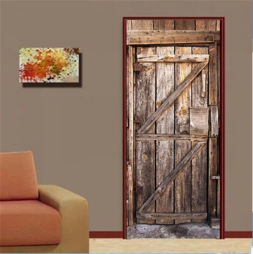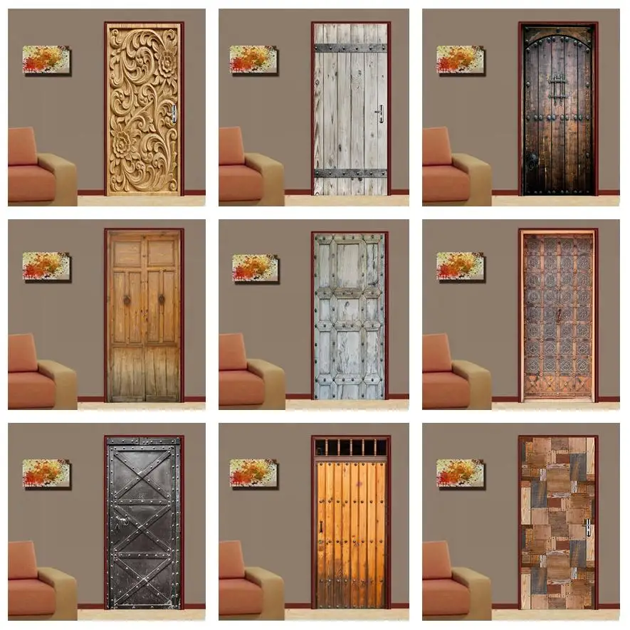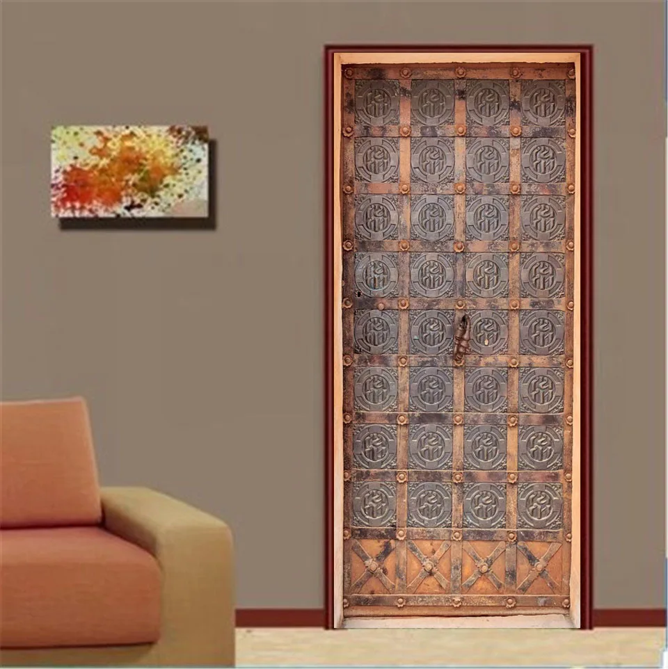 3D наклейка на деревянную дверь в стиле ретро, самоклеящаяся наклейка для украшения комнаты, домашний дизайн, железная дверь, обои-покрытие, Виниловая наклейка, s постер
