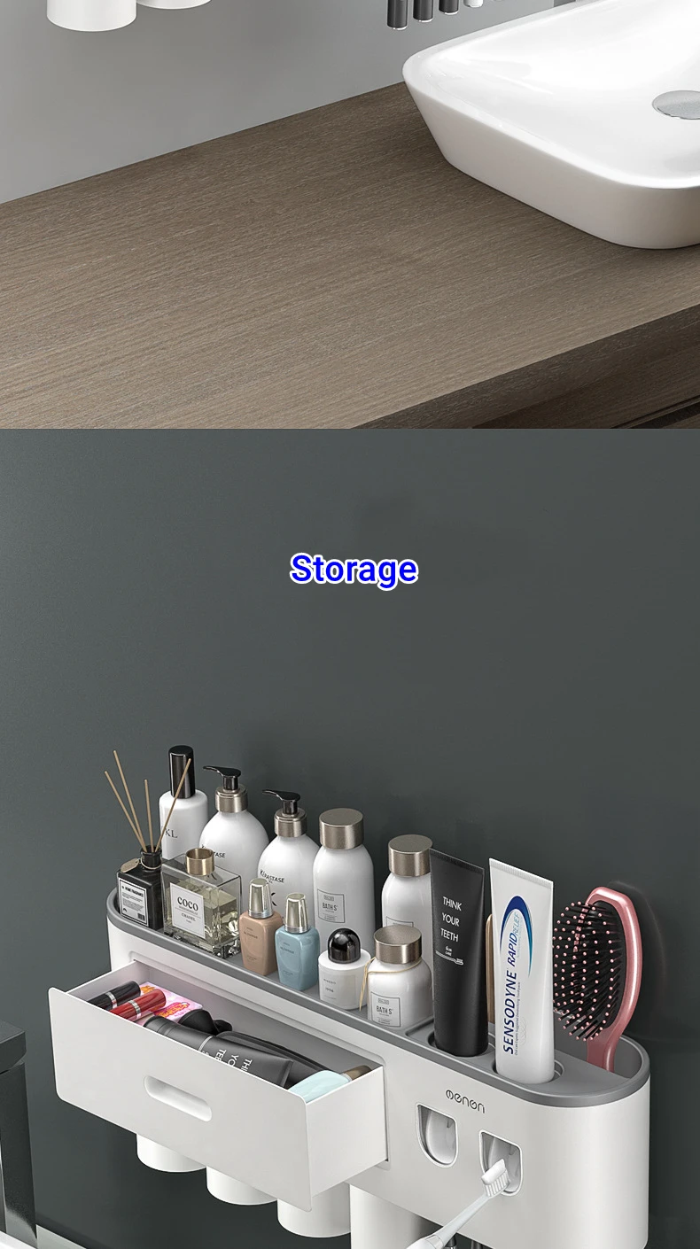 2. Многофункциональная зубная щетка-держатель, который объединяет держатель зубной щетки + 2 соковыжималки для зубной пасты + хранение в одном, не занимает места и удобен и практичен