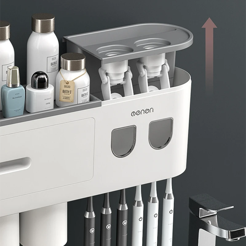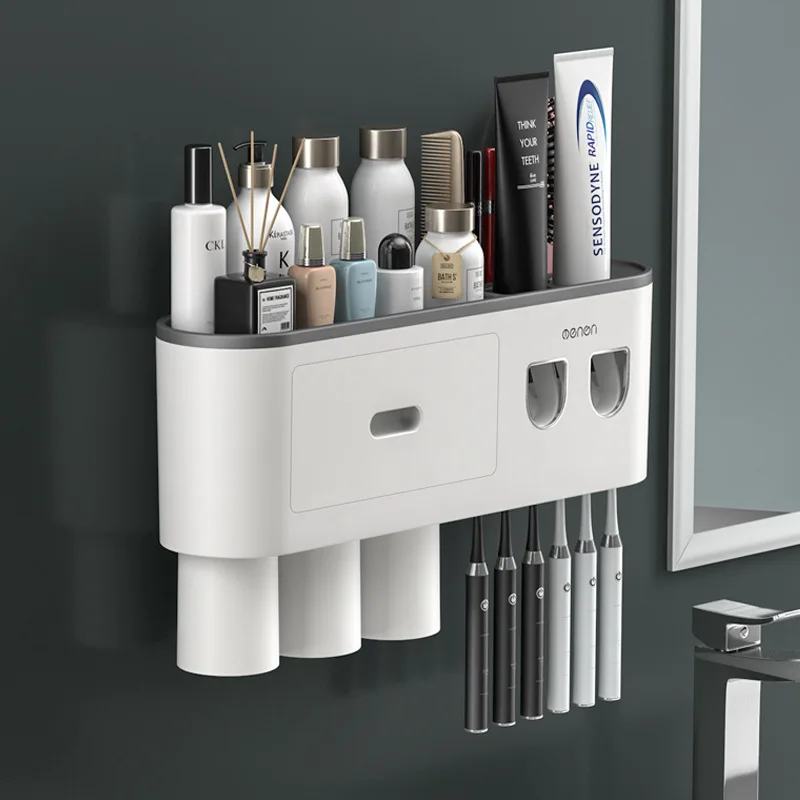 Магнитная Адсорбция перевернутая зубная щетка держатель двойной автоматический зубная паста соковыжималка Диспенсер стеллаж для хранения Органайзер для ванной комнаты