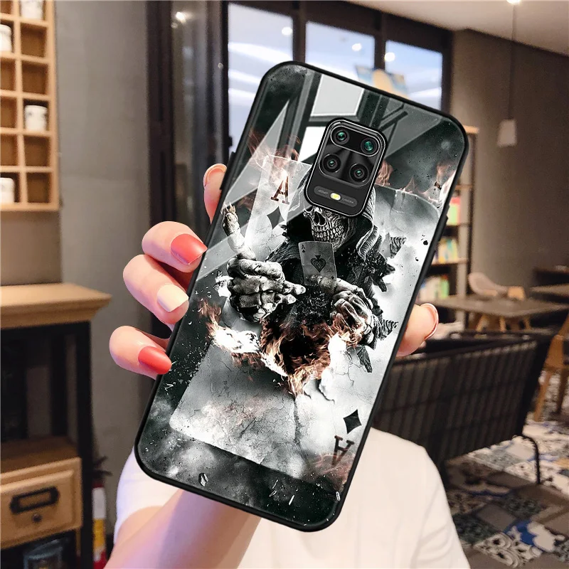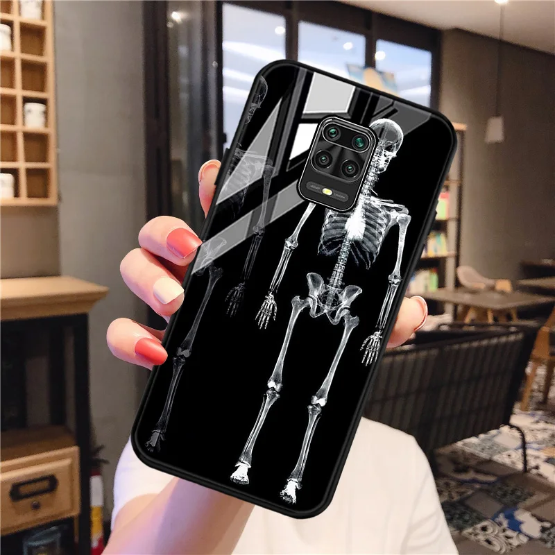 Чехол Poco X3 Pro F3 M3 для Xiaomi Redmi Note 10 9 8 7 Pro 9s 7s 10T Coque Redmi 9C NFC Funda Xiaomi Mi 11 Lite стеклянный чехол с черепом