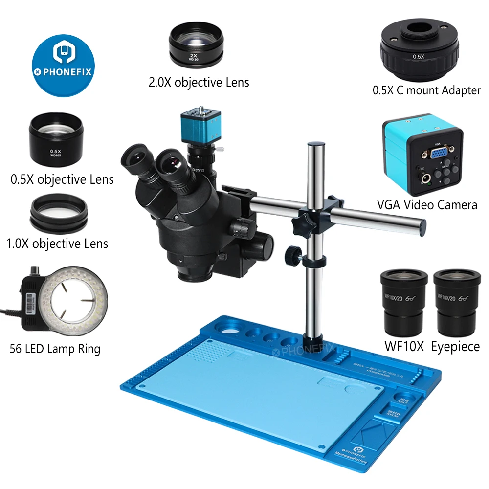 Тринокулярный стереомикроскоп 3,5x-90X, для ремонта печатных плат телефонов, для биологической лаборатории, промышленный, с муль-фокусным расстоянием, со светодиодной подсветкой для объектива камеры