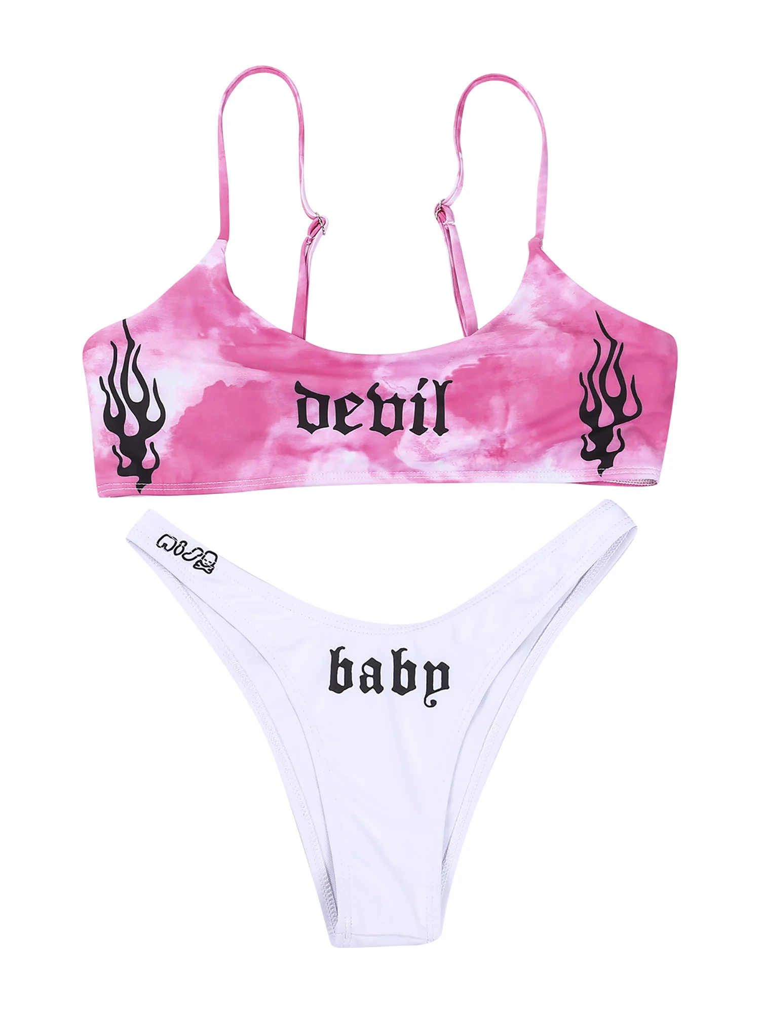 Женский купальный костюм из 2 предметов, сексуальная короткая кофта с принтом букв и U-образным вырезом и Трусики-бикини, летние купальники