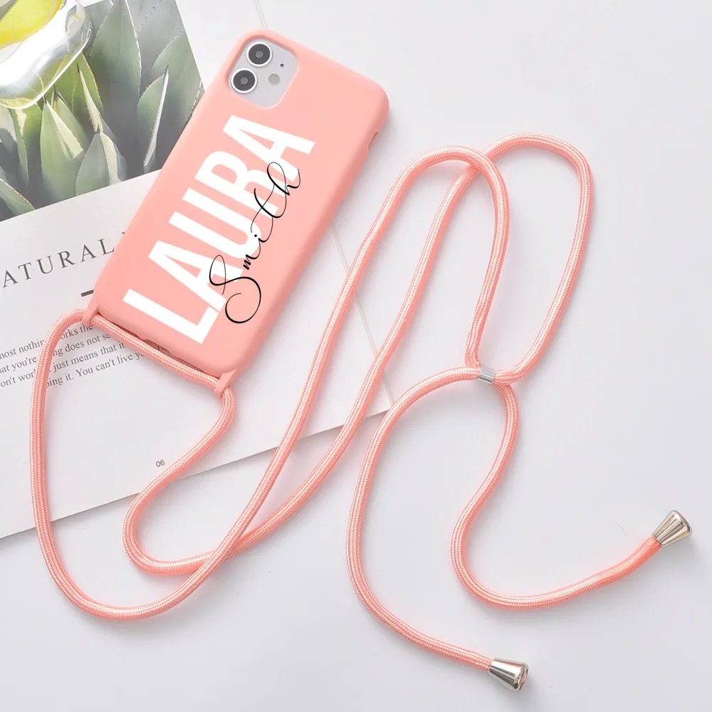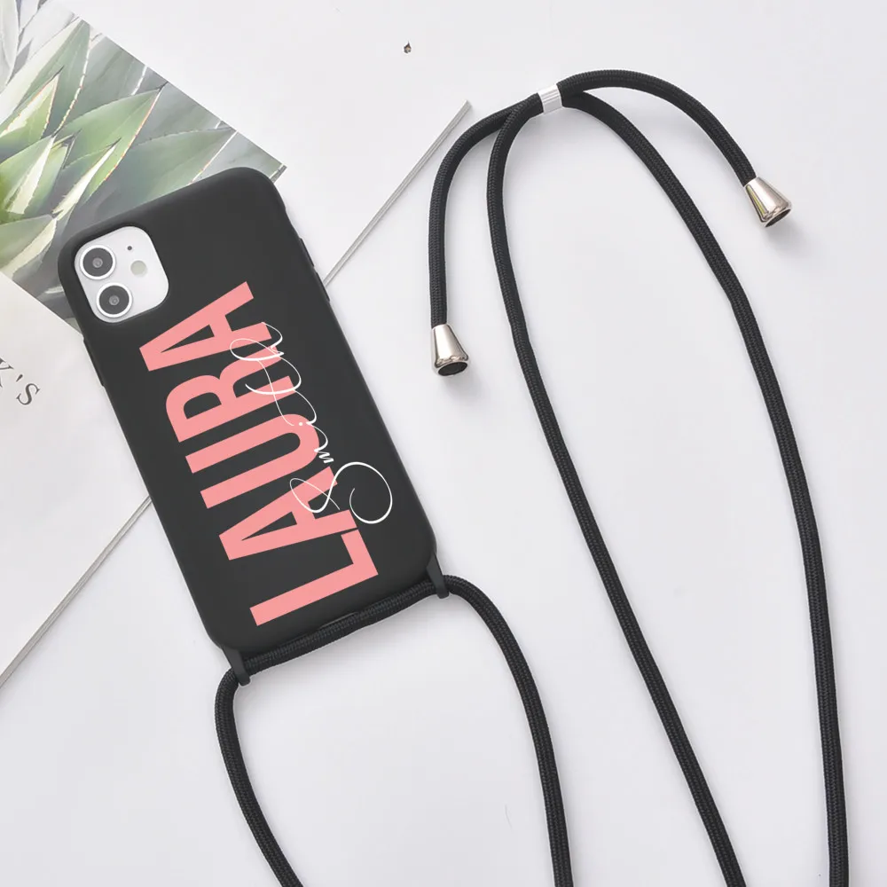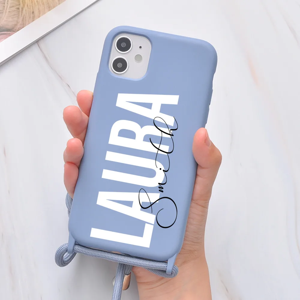 Оригинальный силиконовый чехол с ремешком для iPhone 12, 11 Pro Max, 7, 8 Plus, 10, X, XR, XS, SE 2020, с именем на заказ