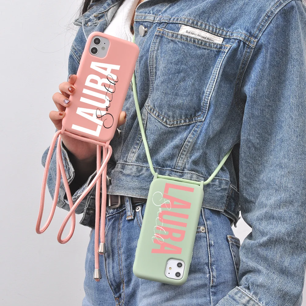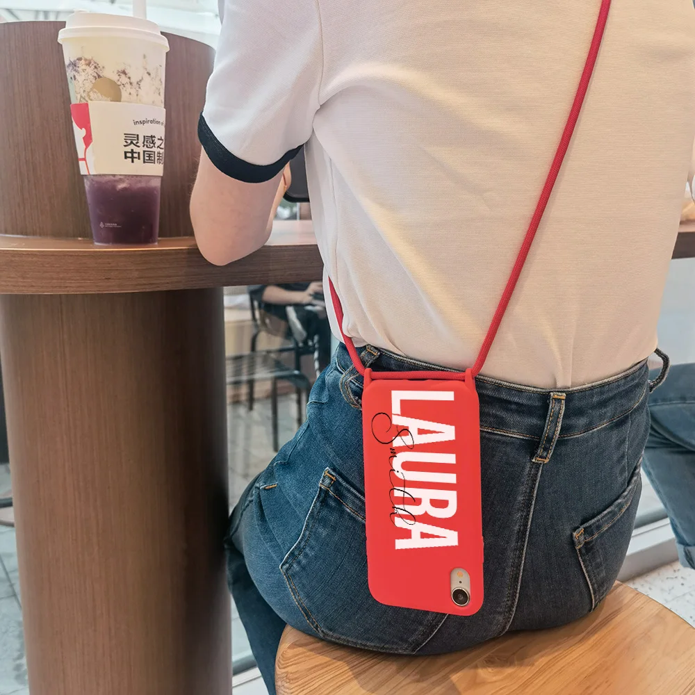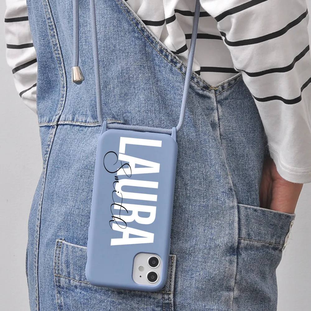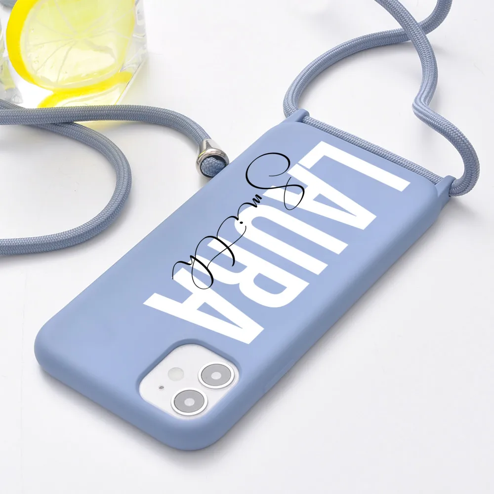 Оригинальный силиконовый чехол с ремешком для iPhone 12, 11 Pro Max, 7, 8 Plus, 10, X, XR, XS, SE 2020, с именем на заказ