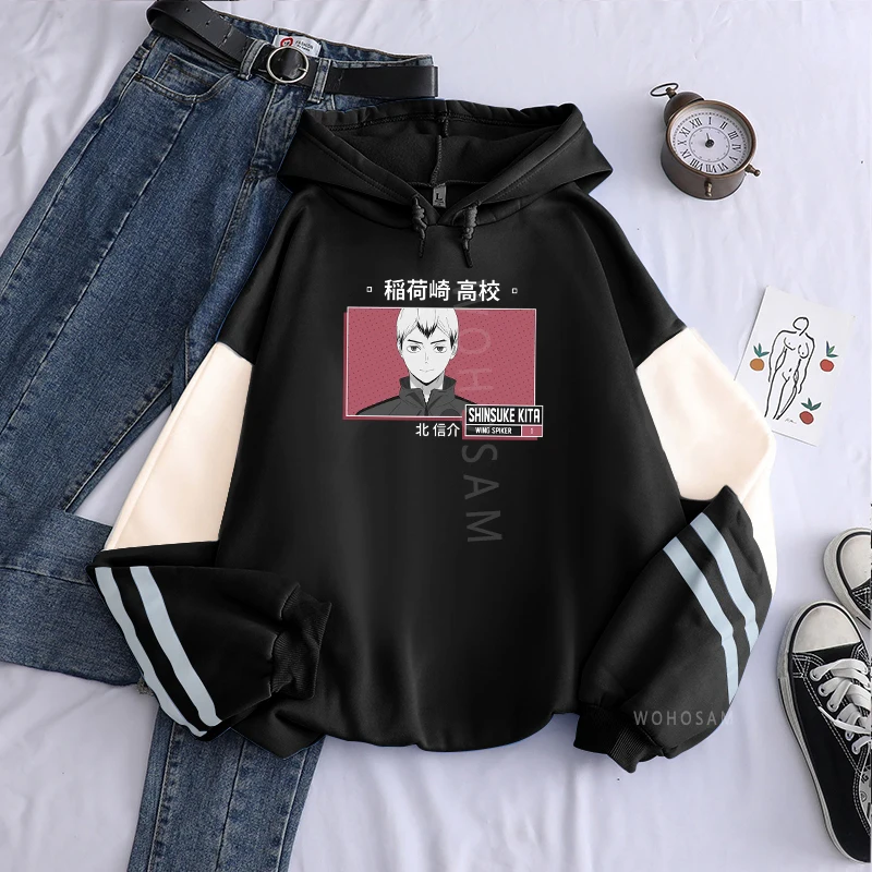 Мультяшные толстовки Shinsuke Kita Haikyuu, женские повседневные пуловеры в стиле Харадзюку, аниме, инаризаки, волейбол, младший мужской свитшот в стиле пэчворк
