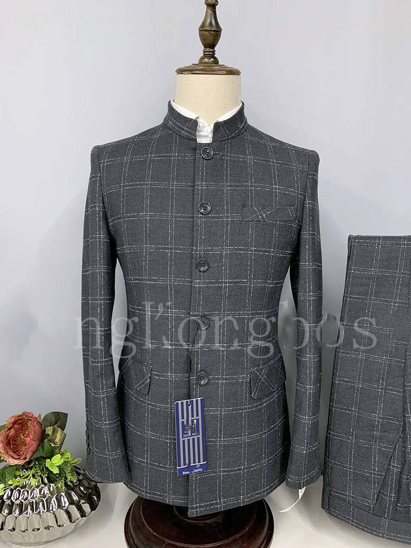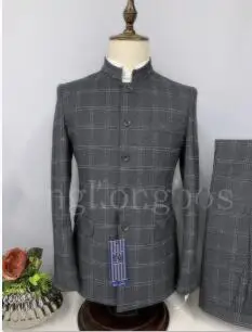 2021 изготовленные на заказ китайские технические воротники серые клетчатые свадебные костюмы Мужские приталенные деловые повседневные мужские пальто Блейзер брюки для жениха