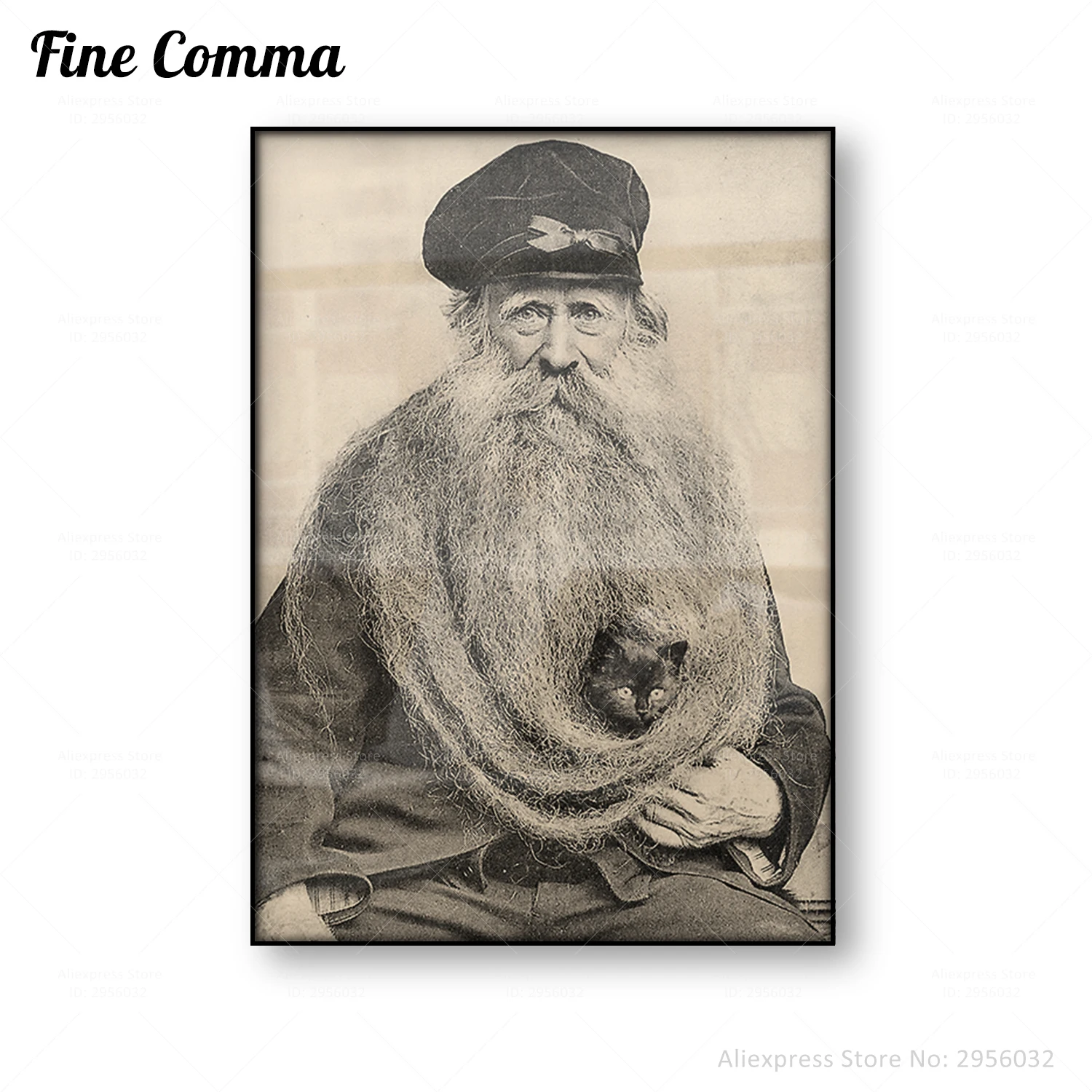 Винтажный постер с длинной бородой и черной кошкой, старая фотография, печать на холсте, черная кошка, забавная кошка, настенное искусство, фото, украшение для дома