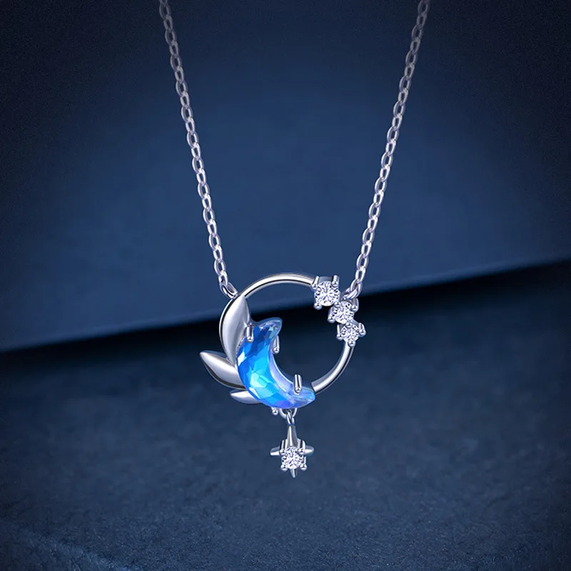 Ожерелье с кулоном в виде Луны из кубического циркония, многоцветно...