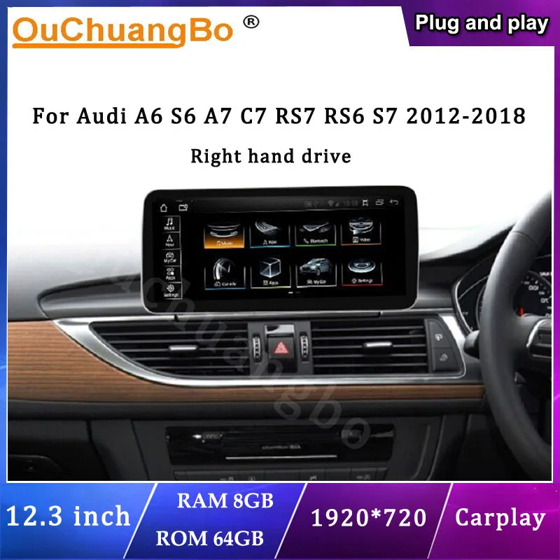 Автомагнитола Ouchuangbo, 12,3 дюйма, для Audi A6, S6, A7, C7, RS7, RS6, S7, 2012-2018, RHD, с 8-ядерным процессором, android 10, ОЗУ 8 ГБ, ПЗУ 64 ГБ, carplay, Navi