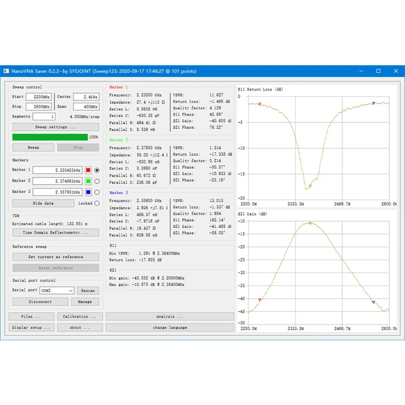 1. 4,3-дюймовый IPS ЖК-дисплей дисплей, разрешение 800*480, ультра-широкий обзор угол, при длительном использовании не режет глаза.2. Чехол из алюминиевого сплава, прочный и прочный, эффективно защищает от электромагнитных помех для обеспечения точности измерений.3. Размер корпуса компактный и портативный.4. Радиочастотный интерфейс SMA, который удобен для подключения всех видов DUTs.5. Литиевая батарея большой емкости 5000 мАч, срок службы батареи до 7 часов.6. Полный дизайн экрана, с 3 боковыми кнопками одновременно, гибкой и удобной в эксплуатации.7. Поддержка китайского и английского интерфейса.8. Оптимизированный дизайн пользовательского интерфейса, удобный для пользователей для выполнения операций измерения.9. Поддержка регулировки яркости экрана.10. Прошивка может быть обновлена через виртуальный u-диск, программист не нужен, а Прошивка может быть обновлена через прилагаемый usb-кабель для передачи данных type-c.11. Стандартные высококачественные Калибровочные детали и RG405 фазостабильный кабель для обеспечения точности калибровки.12. Интерфейс выхода USB предназначен для поддержки 5 В/1 А выходной мощности.13. С использованием 2А IC высокой токовой зарядки, время зарядки короче.14. Изображение экрана устройства можно получить, сделав скриншот главного компьютера.Частотный диапазон: 50 кГц-3 ГГцКоличество калибровочных точек: 101 точкаКоличество отметок: 4Функции: Измерьте параметры S, соотношение стоящей волны напряжения, диаграмму Смита, фазу и т. д.Цвет: черныйМатериал: металл + пластикПосылка:1 хост1 x SMA Набор для калибровки разомкнутой цепи1 x SMA Набор для калибровки короткого замыкания1 x набор для калибровки нагрузки SMA 50Ω1 х SMA-KK адаптер с двумя головками1 x SMA-JJ двухголовый штыревой адаптер1 x SMA-JKW наружный винт с внутренним отверстием для внутреннего винта2x20 см SMA-JJ RG405 RF кабель1 кабель для передачи данных USB type-CСтилус-1 шт.1 x выборТолько вышеуказанная посылка, другие товары не включены.Примечание: светильник и различные дисплеи могут привести к тому, что цвет товара на картинке немного отличается от реального. Допускается погрешность в измерениях +/- 1-3 см.