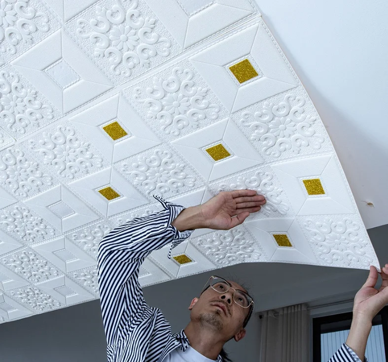 3D настенная наклейка, стерео потолочная панель, декор на крышу, пенопластовые обои, самоклеящиеся водонепроницаемые украшения сделай сам для гостиной, фона для телевизора
