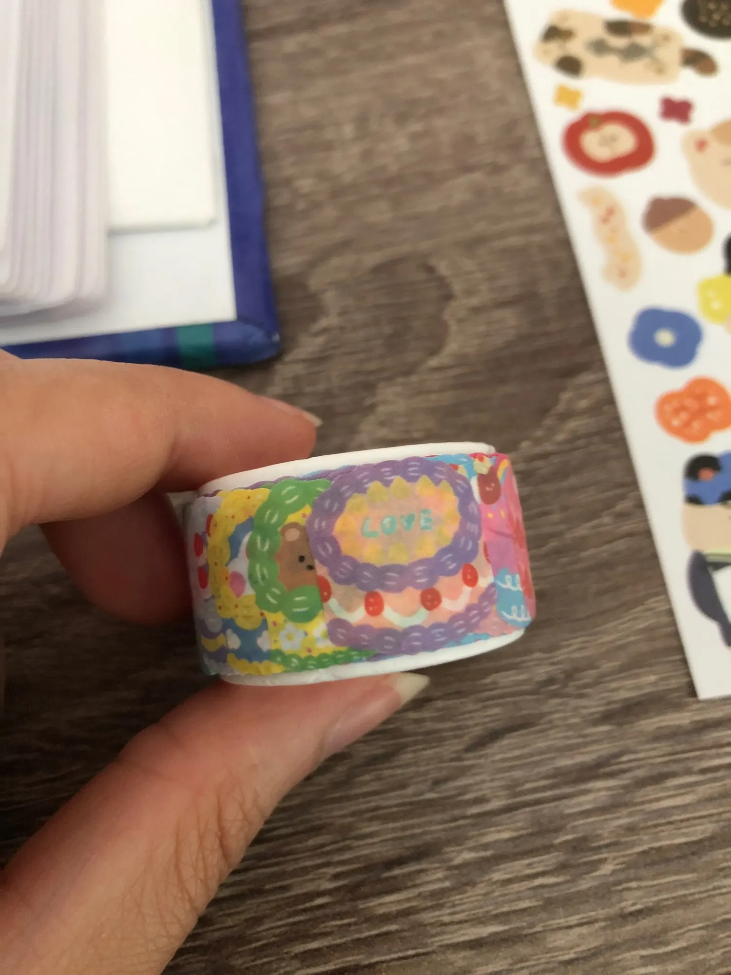 El diseño es muy bonito. Pero no me gusta que sean pegatinas encima de otras y no un rollo, pero no es importante así que está bien. Al quitar el plástico y las pegatinas de encima es simplemente un rollo de pegatinas en forma de washi tape. :)))