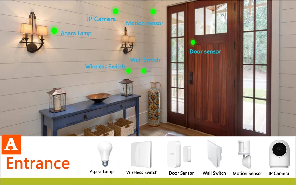 Шлюз может работать с беспроводным переключателем xiaomi, датчиком влажности aqara, человеком aqara, окном aqara,
