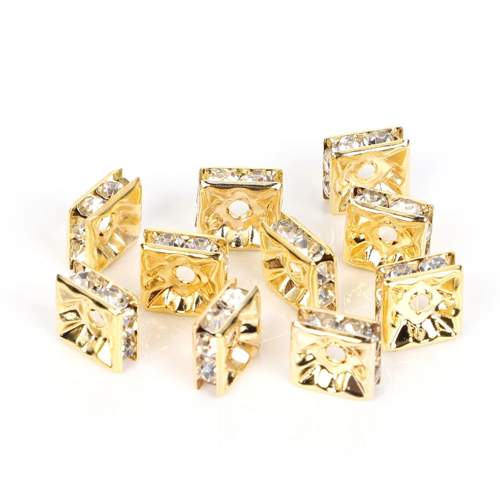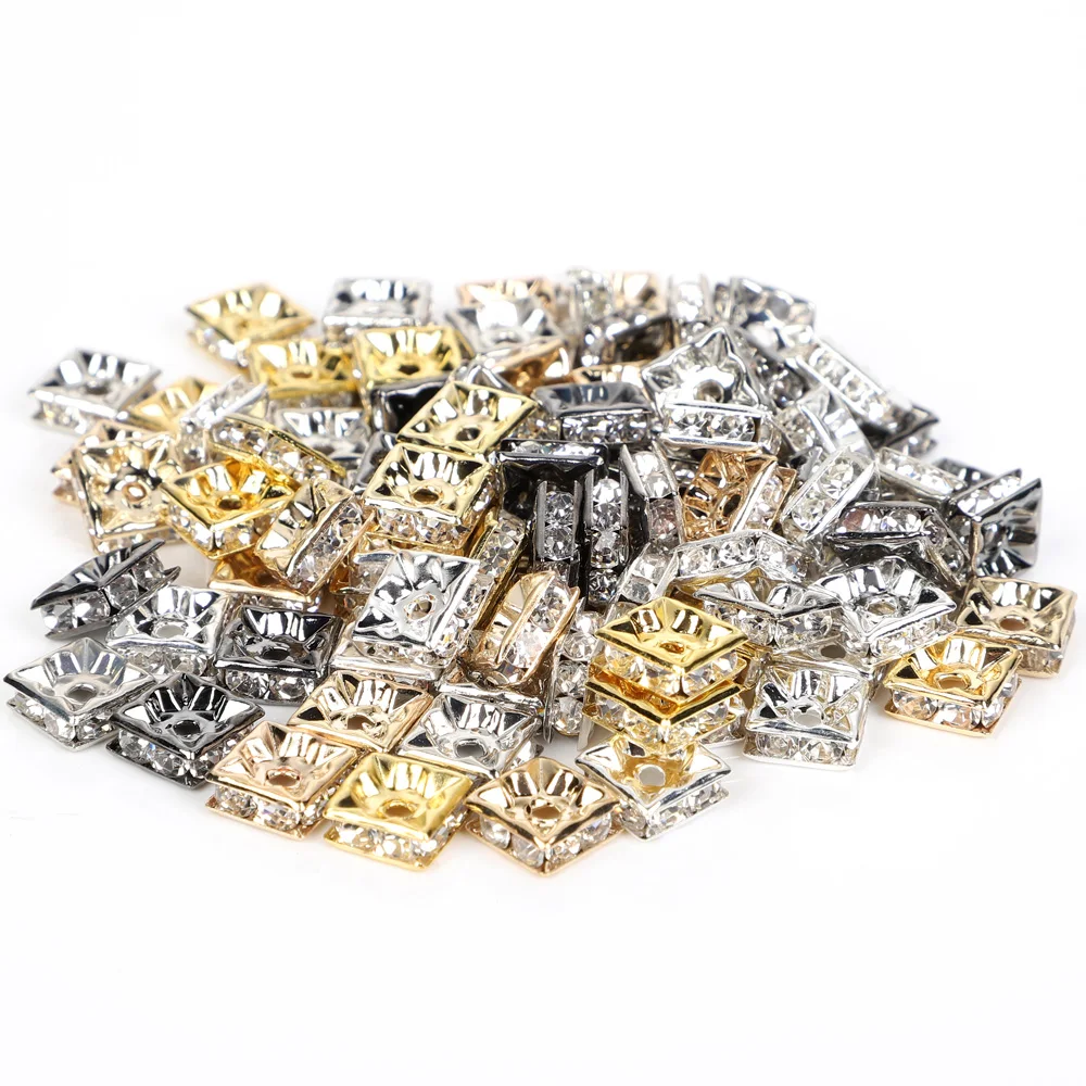 50 шт. 6810 мм квадратные Кристаллы Стразы рондели разделительные бусины для изготовления ювелирных изделий DIY браслет ожерелье аксессуары металлические бусины