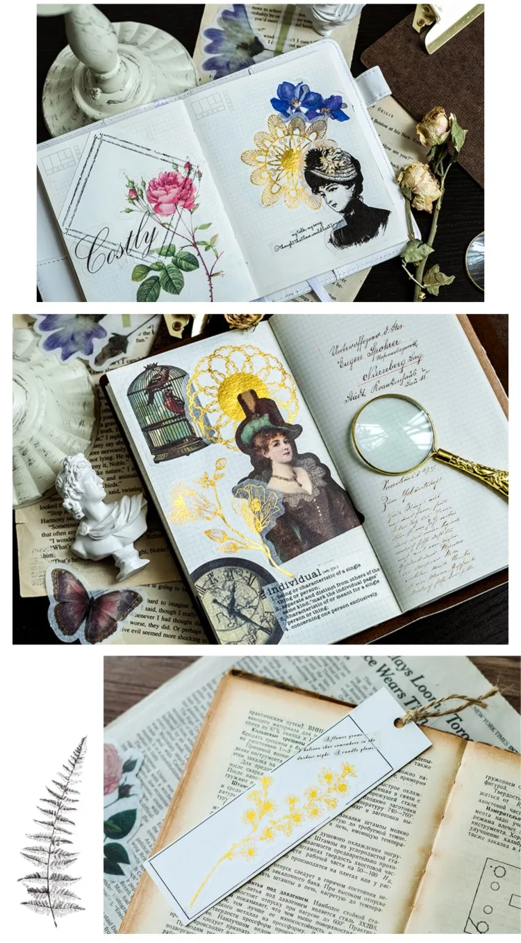 60 шт.упак. Винтаж наклейки "растения" золото деко канцелярские при...
