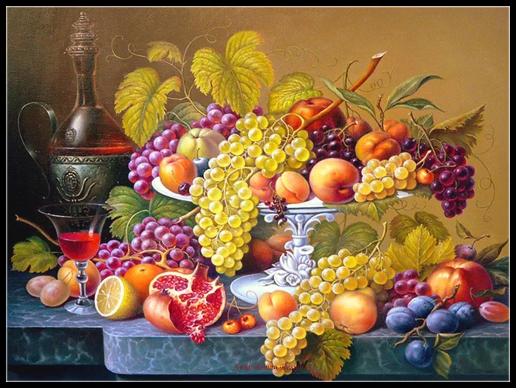Счетная вышивка крестиком -Crafts 14 ct Aida DMC цвет сделай сам-классический фрукт натюрморт