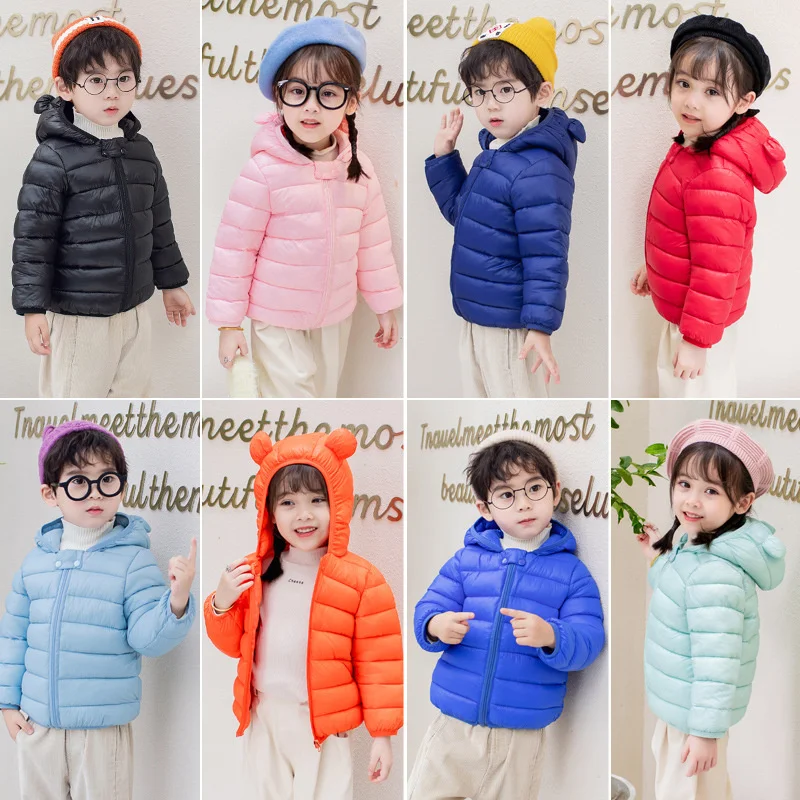 Зимняя куртка для маленьких девочек Детские легкие пуховые пальто с капюшоном и ушками для мальчиков, весенняя одежда для девочек Одежда для маленьких детей, пальто для мальчиков