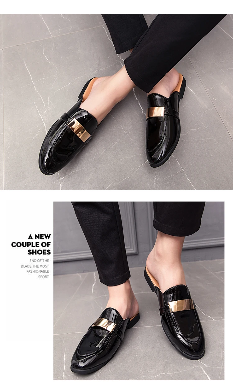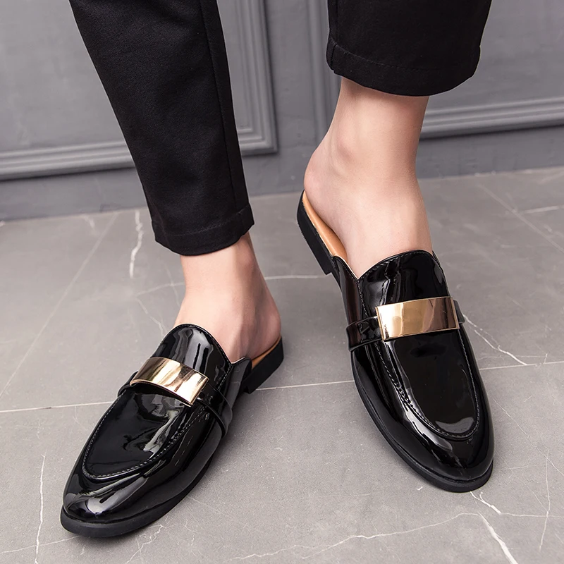 Босоножки мужские из лакированной кожи, дизайнерские полуботинки, повседневные Роскошные лоферы, модные шлепанцы для улицы и дома, черные