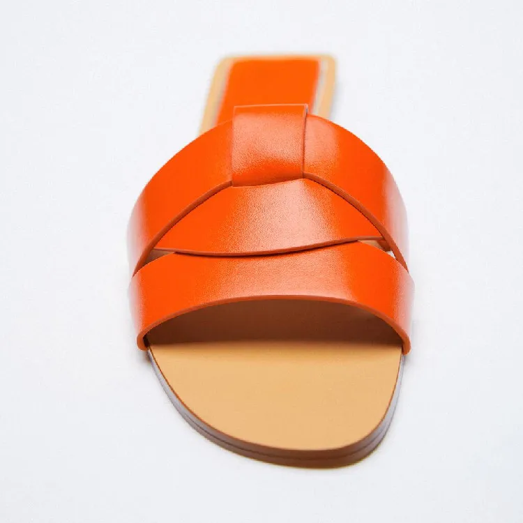 Новинка лета 2021, модная обувь для детей оранжевого цвета, кожаные шлепанцы с перекрестной шнуровкой, пляжные праздничные шлепанцы на плоской подошве