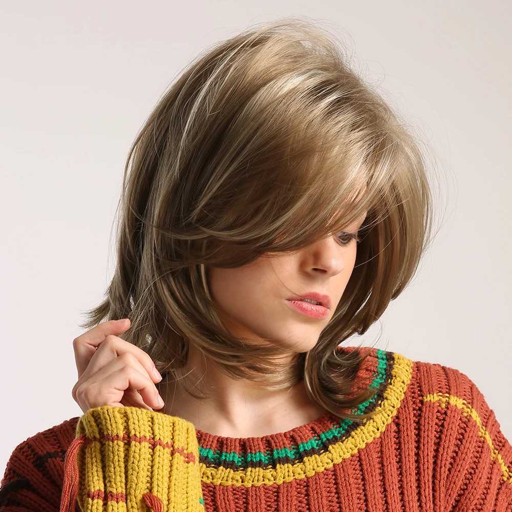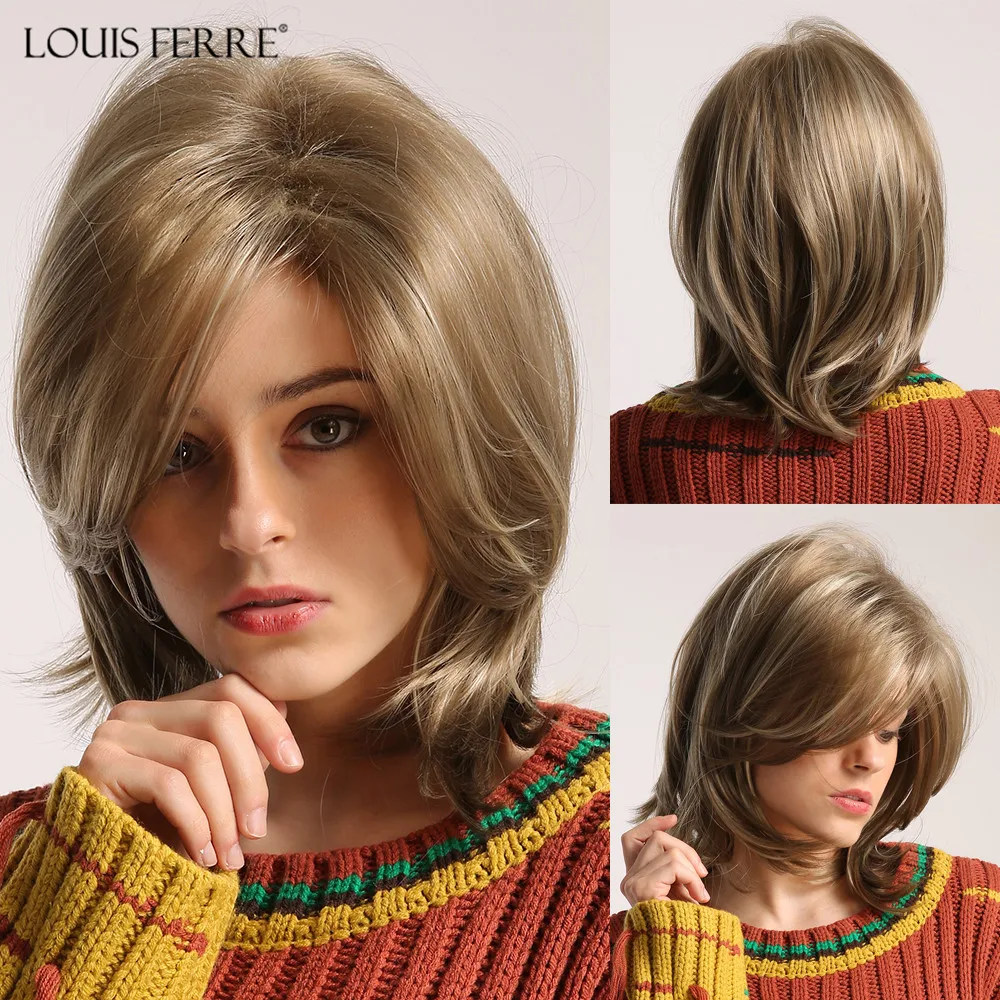 Короткие Многослойные синтетические парики LOUIS FERRE для белых женщин, светлые волосы, парики с боковой частью, челки, термостойкие, для косплея