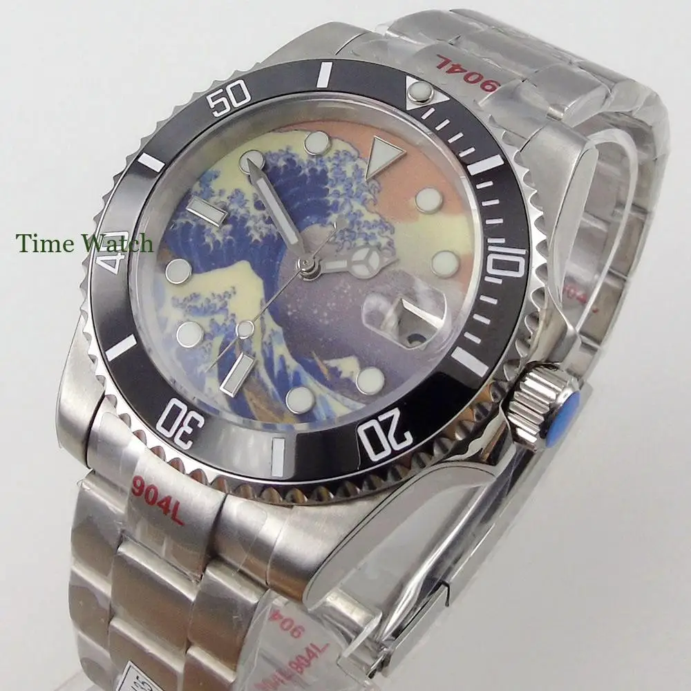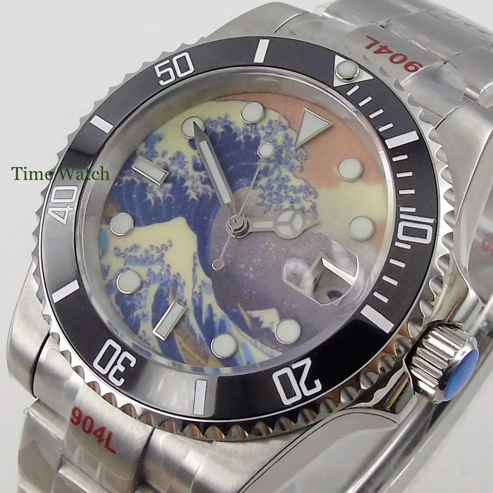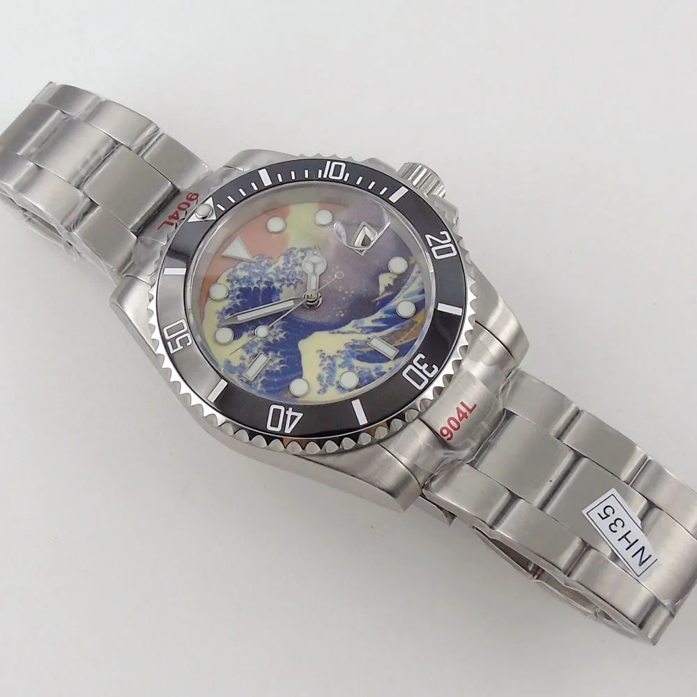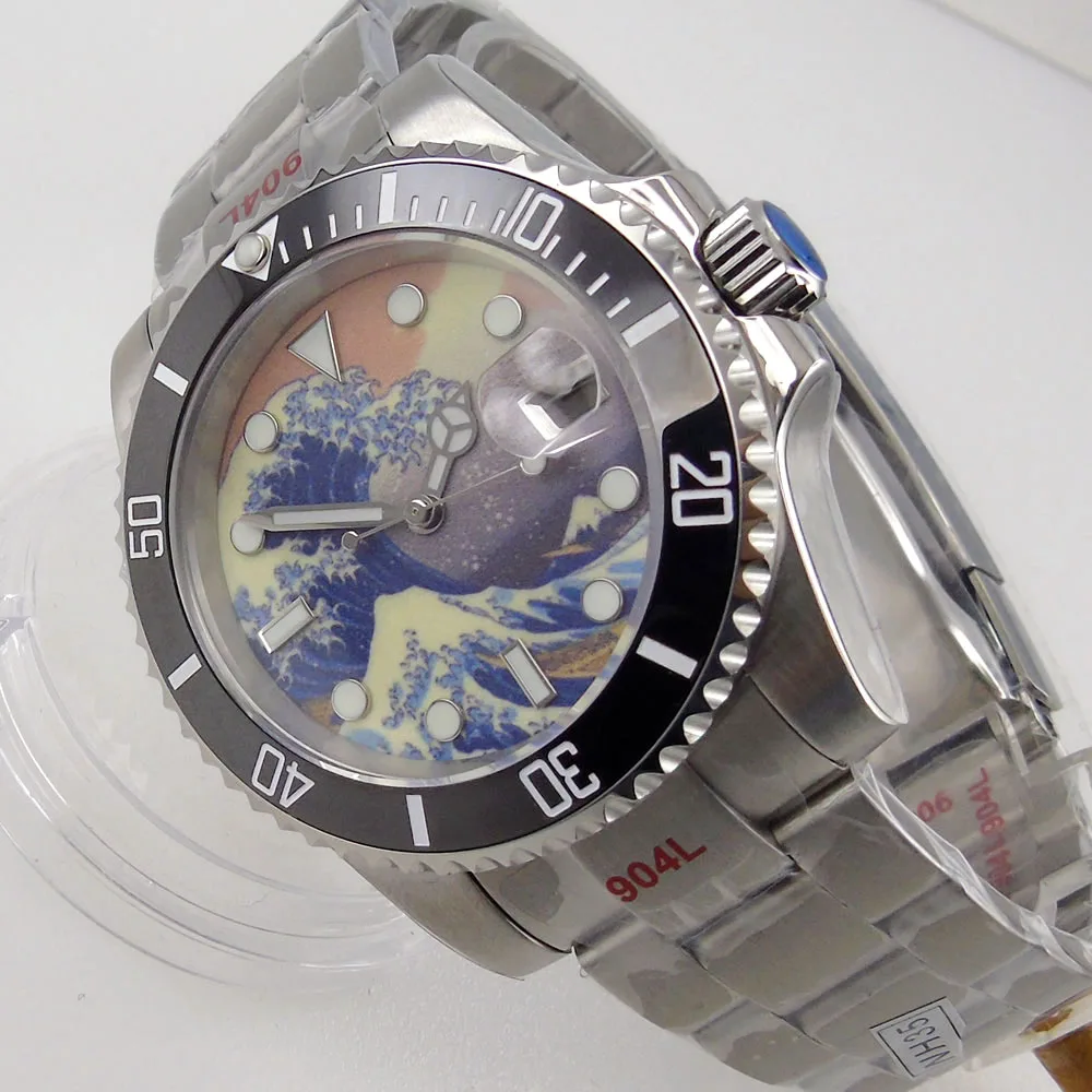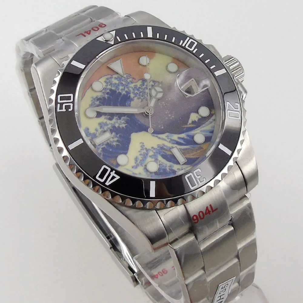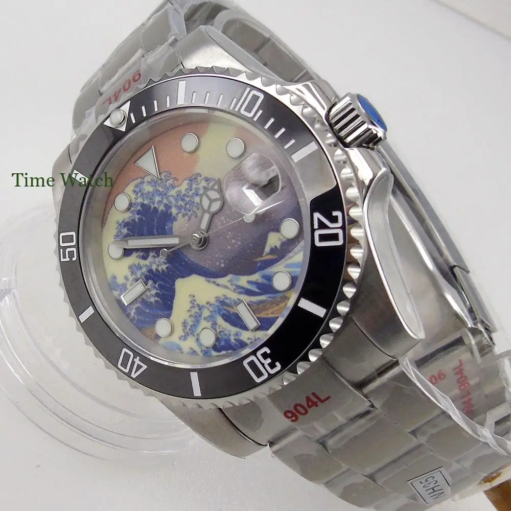 Мужские часы Kanagawa японские NH35Miyota8215 с автоматическим движением, мужские часы с сапфировым стеклом, светящийся браслет с циклами, 40 мм
