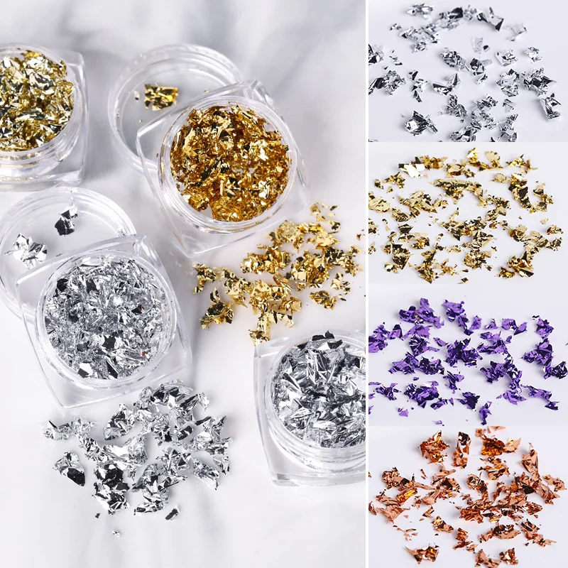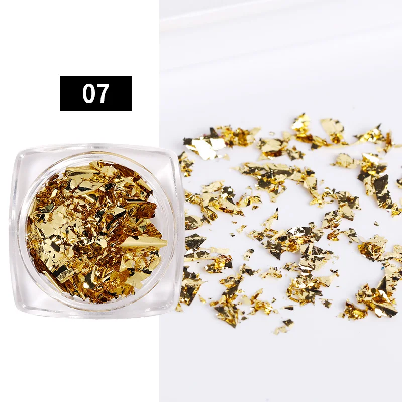 Блестящие золотые бриллианты, нестандартные алюминиевые хлопья, блестки, кристалл, металлический дизайн ногтей, украшения для ногтей