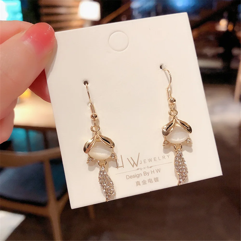 Серьги-гвоздики женские, с опалом, в форме совы, кристалл, Длинная кисточка