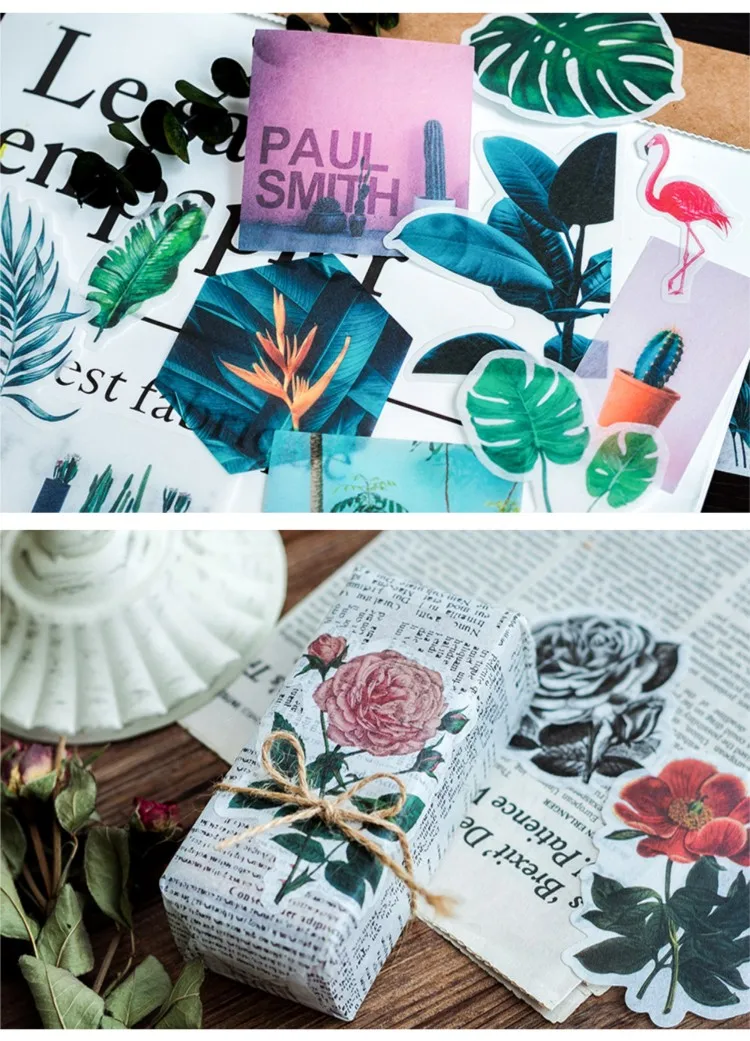 60 шт.упак. Винтаж наклейки "растения" золото деко канцелярские принадлежности для журналов Бумага васи Ретро материал цветы листья растения декоративные наклейки