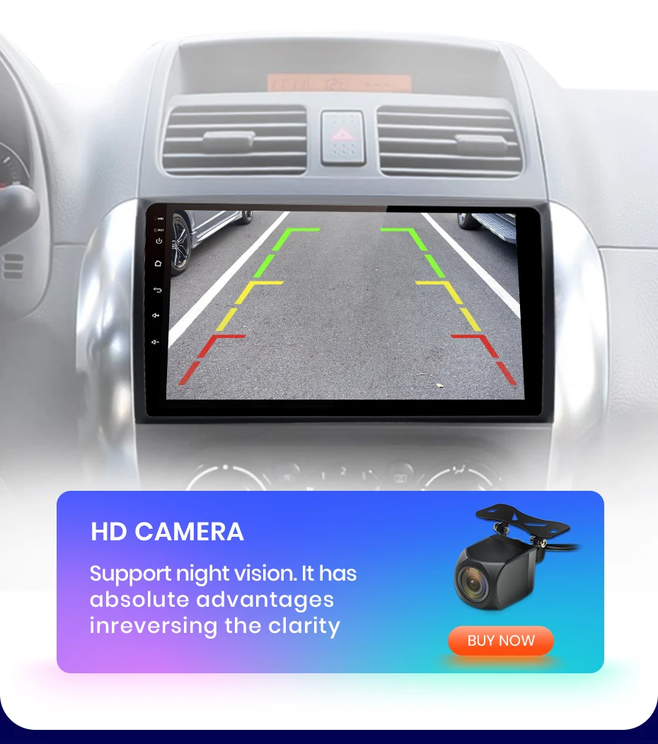 При покупке радио будет отправлена Бесплатная Обычная камера rea, когда автомобиль переключается на обратную передачу, экран автоматически переключится на задний вид с помощью парковочных линий, поможет вам изменить или припарковать автомобиль.(Задняя камера на изображении ниже является необязательной, и она лучше, чем обычная)