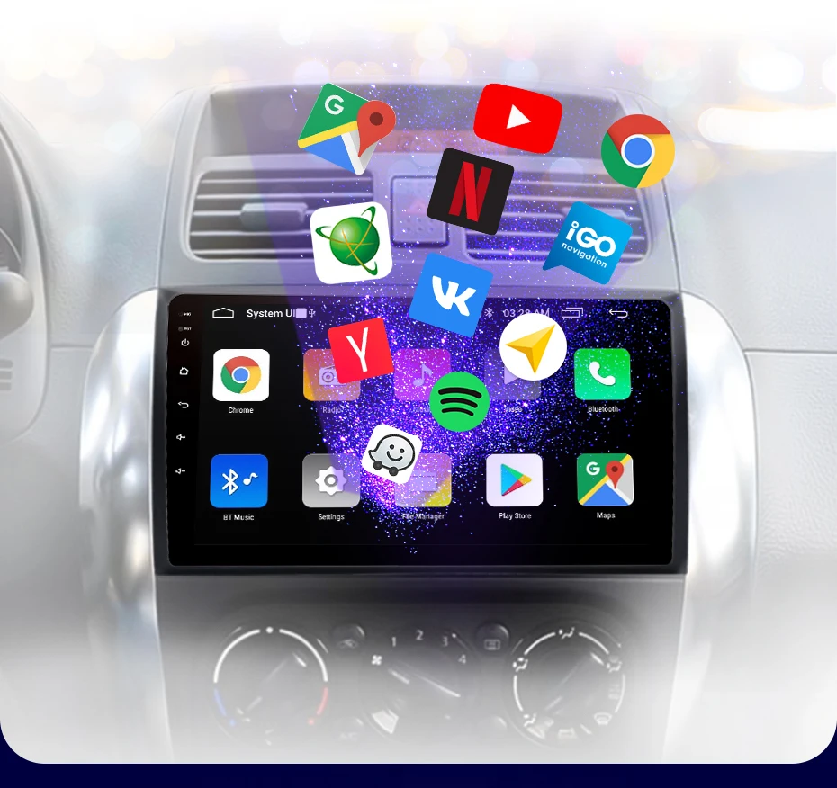 Система Android, имеет различные приложения предварительно установлены или может быть установлен приложение самостоятельно на радио, сделать устройство более функциональным и более приятным.