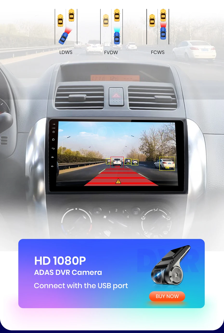 Когда автомобильное радио подключено к ADAS video recorder, это сделает передовую систему помощи при вождении, И предупредит вас, если ваш автомобиль слишком близко к переднему автомобилю или если ваш автомобиль отклоняется от полосы движения, чтобы помочь вашему вождению безопаснее и проще.