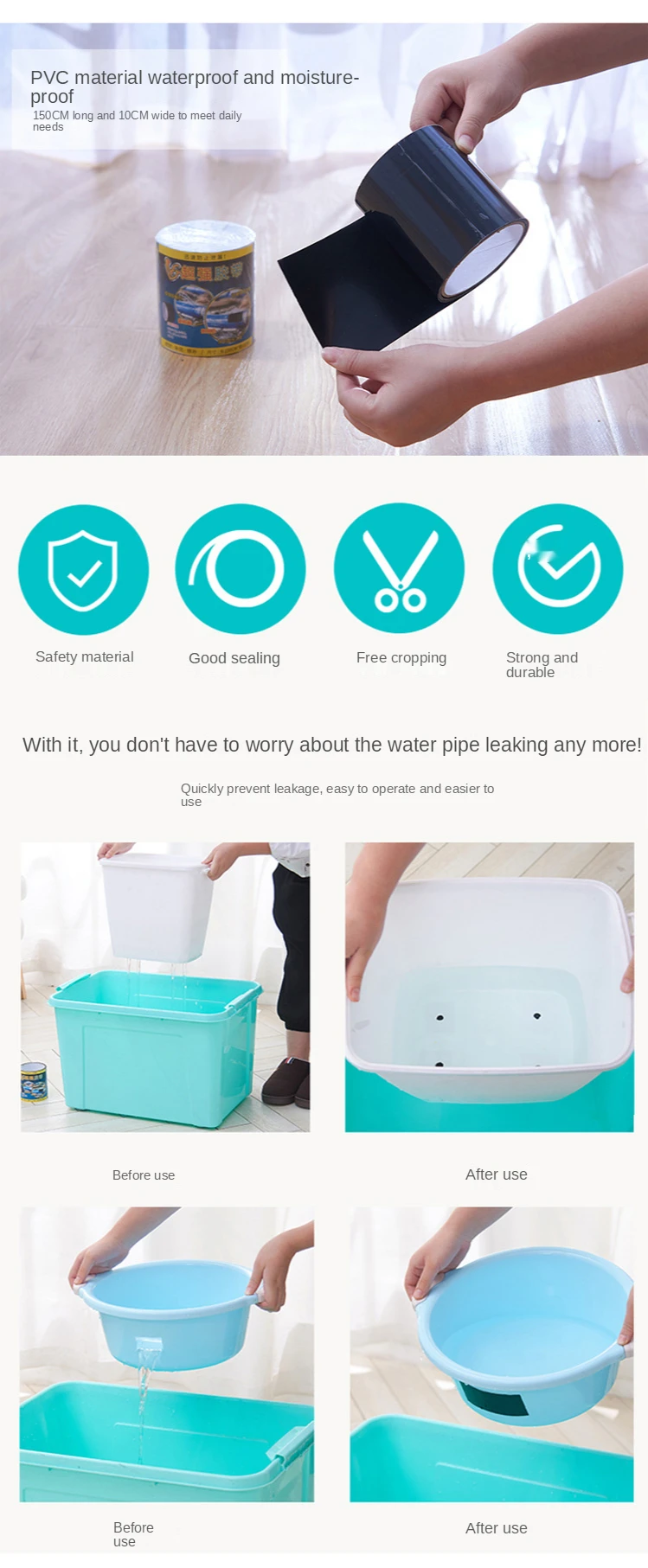 Сверхпрочная водонепроницаемая лента 150 см для предотвращения утеч...