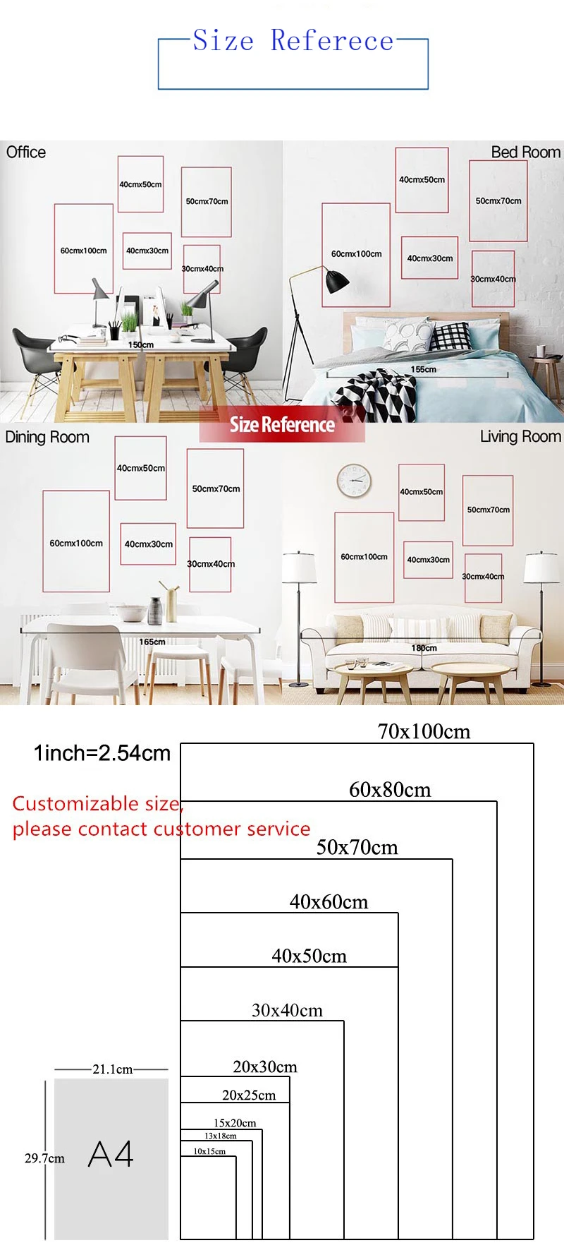 2. Все продукты не содержат каких-либо рамок или дополнительных границ, соотношение изображения будет скорректировано в соответствии с размером, который вы приобрели (слегка СЖАТЫЙ или обрезанный).