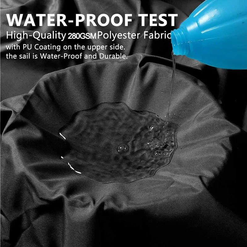1. Высокое качество Изготовлен из 100% абсолютно нового 280 GSM (полиэтилена высокой плотности) материала и отвергает переработанные материалы, более здоровый и безопасный. 2. Водонепроницаемый Изготовлен из высококачественного полиэфирного материала, более здоровый и безопасный. Он устойчив к выцветанию, водонепроницаемый и не содержит плесени, плесени и пятен, включая три накладки для глаз. 3. D-кольца D-кольца из нержавеющей стали, основные части теневого паруса, долговечны, что может служить вашему теневому парусу в течение длительного срока службы. Бесплатная доставка 4 *27Ветряные канаты 00D (250 см для каждого), прочная обработка шитья с каждой стороны, кольцо из нержавеющей стали D на каждом краю, высокая прочность установки.
