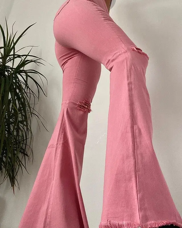 Узкие расклешенные джинсы с высокой талией, однотонные облегающие джинсовые брюки с вырезами на коленях, стильные шикарные пикантные брюки с кисточками на подоле