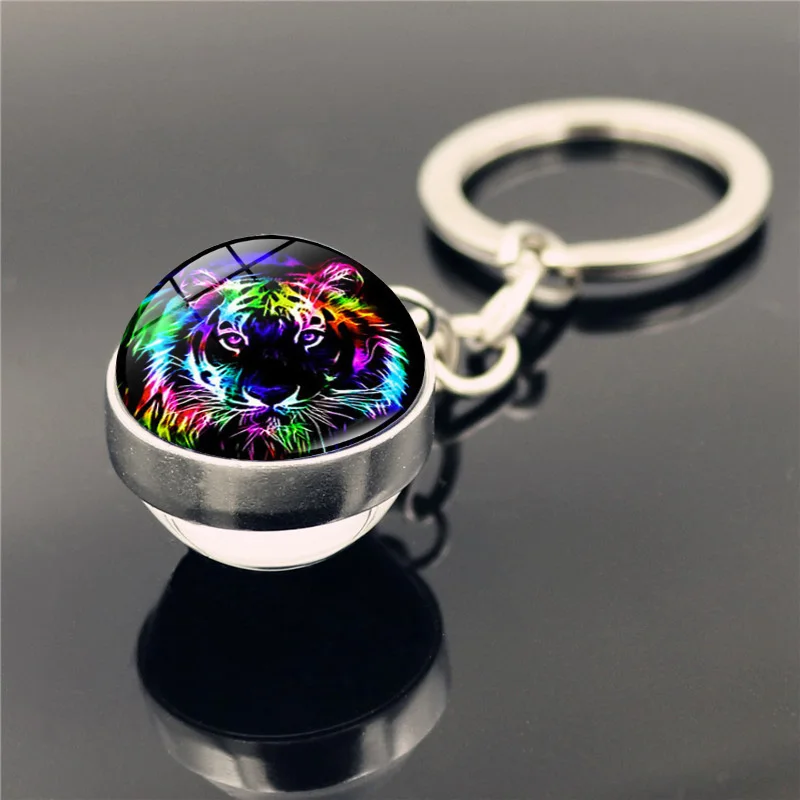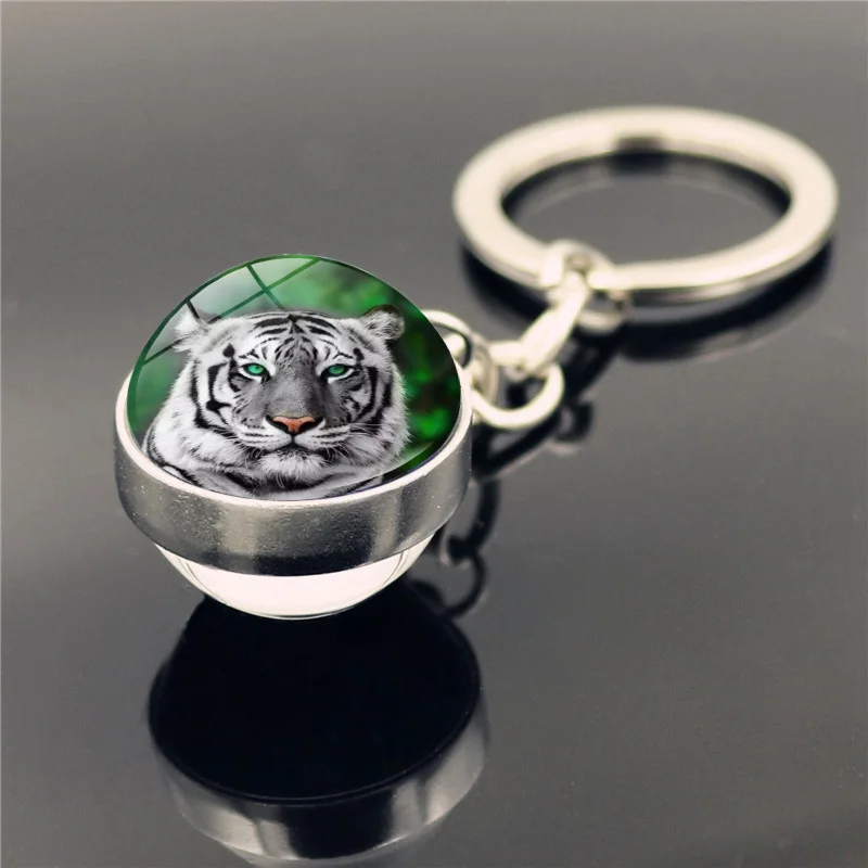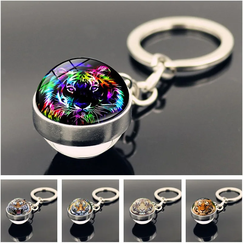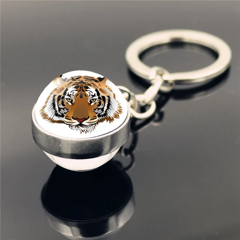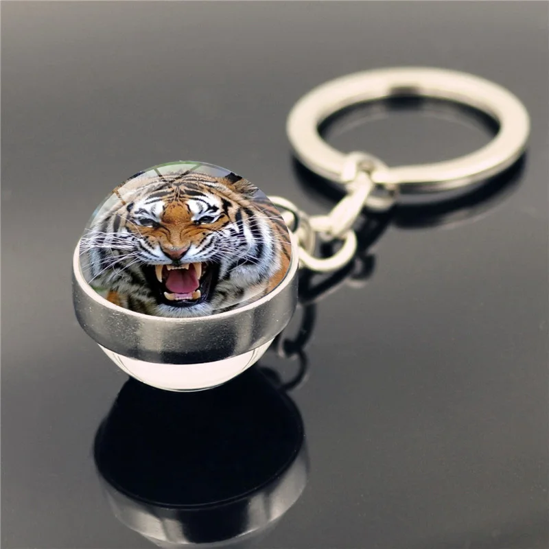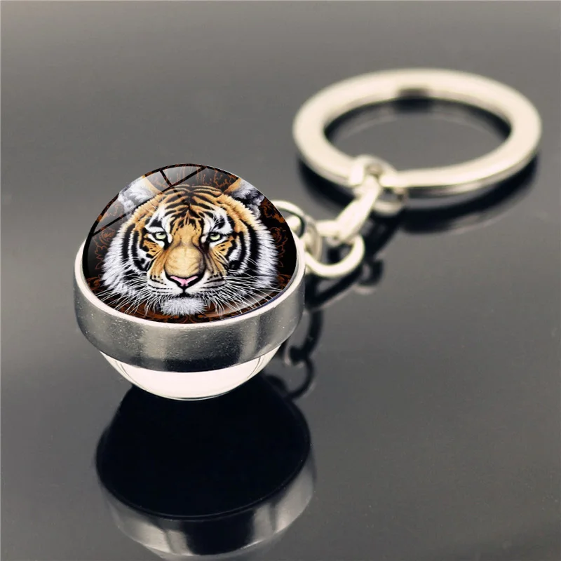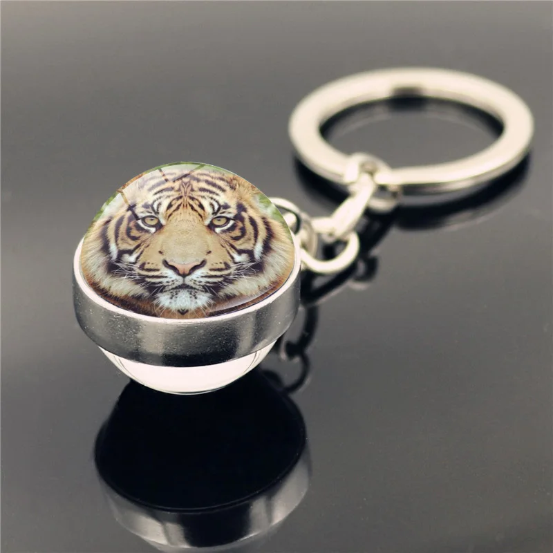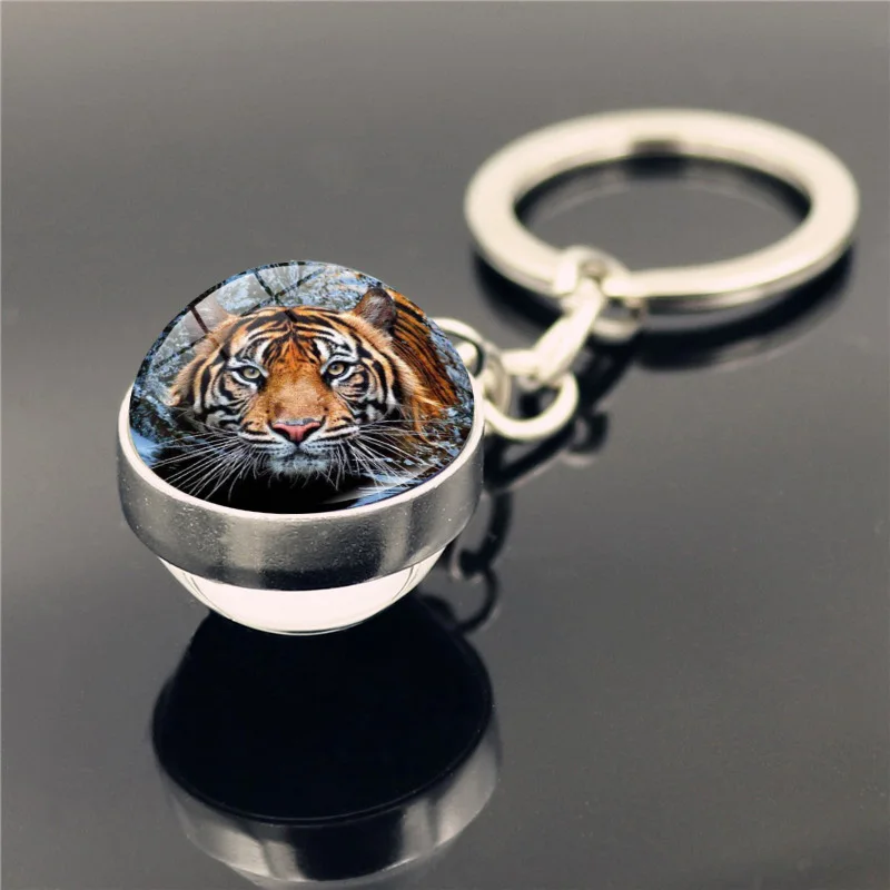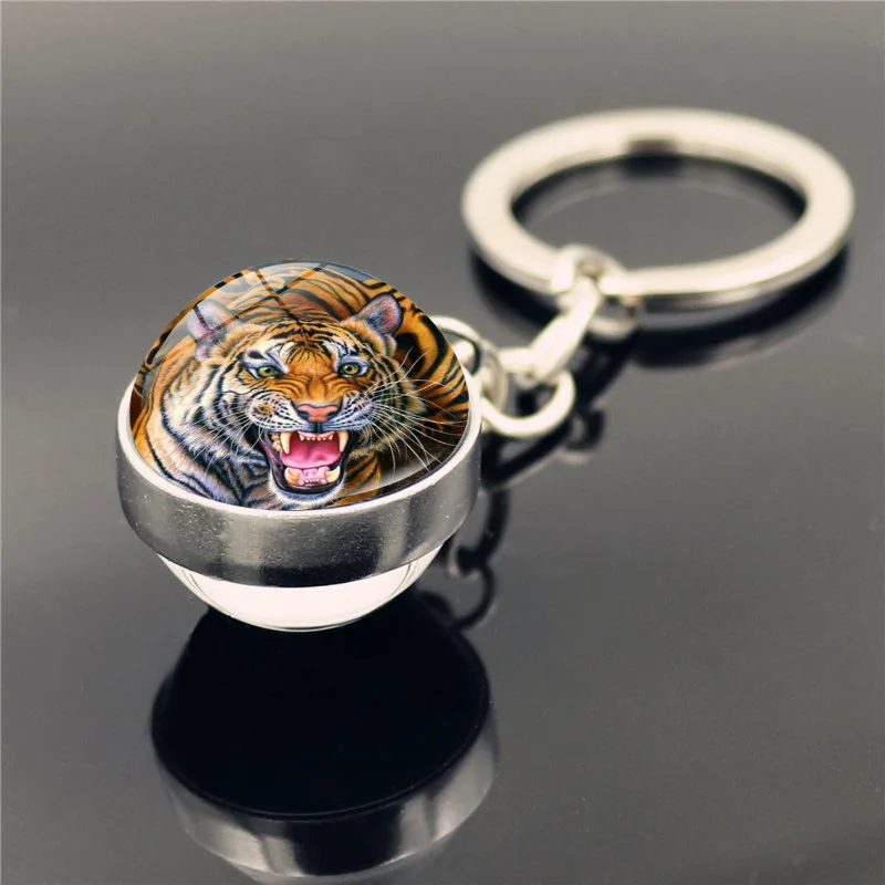 Брелок для ключей, с тигровым узором, двухсторонний стеклянный шарик, металлический брелок, подарки для мужчин и женщин, милый брелок для ключей с животными